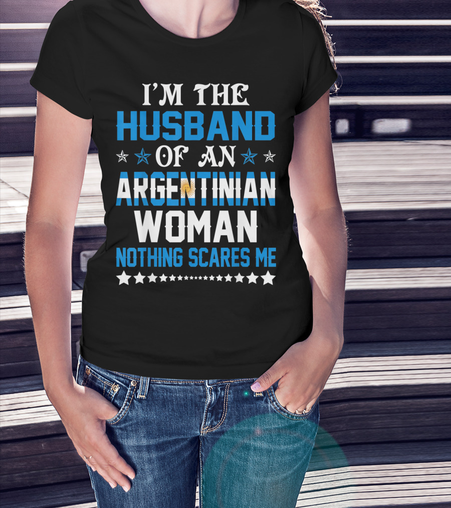 The Husband of an Argentinian Woman Nothing Scares Me T-shirt is designed for everyday wear and a consistent fit. Fabric is pre-shrunk ring-spun cotton with durable stitching. See the size chart below for exact measurements.