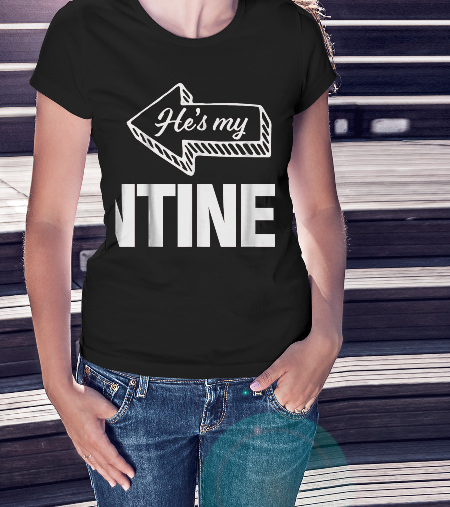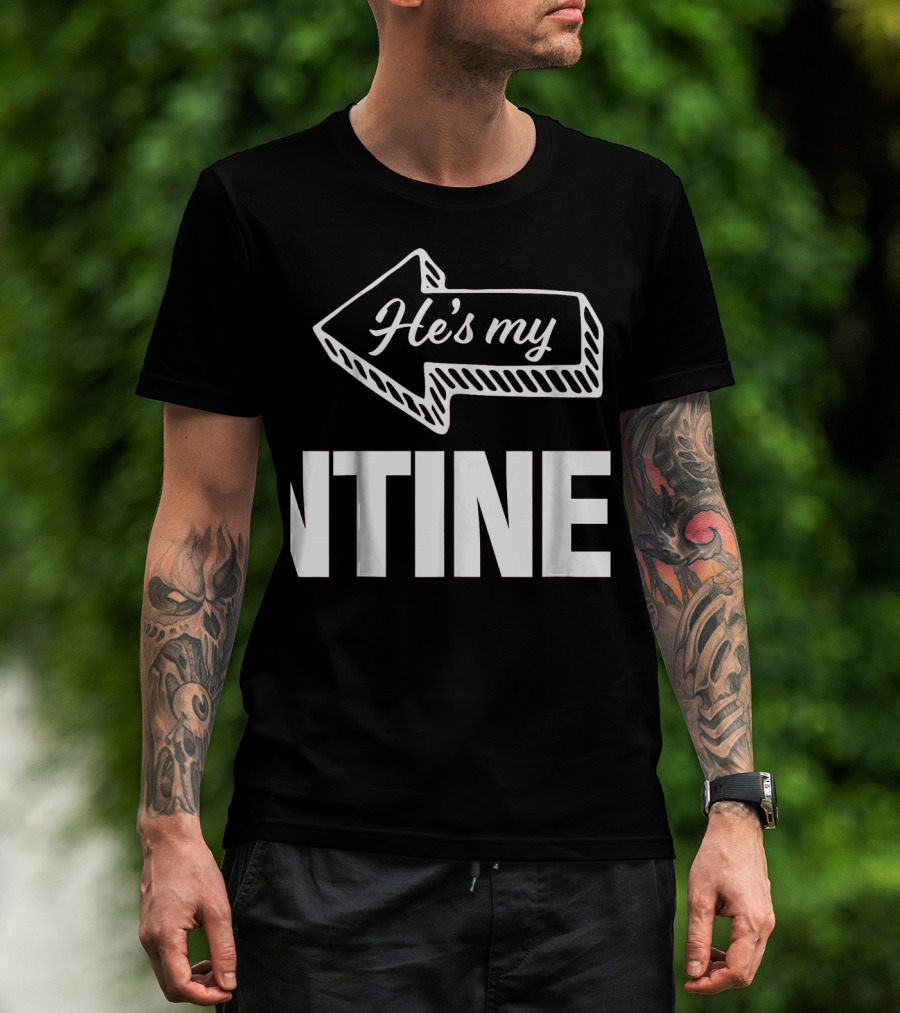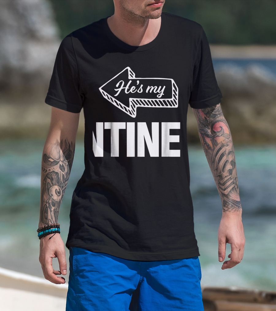 He's My Valentine Left Arrow Mens Matching Valentine T-Shirt
