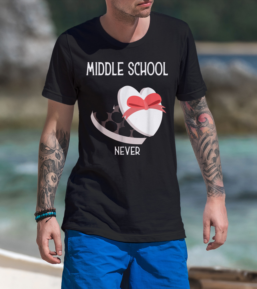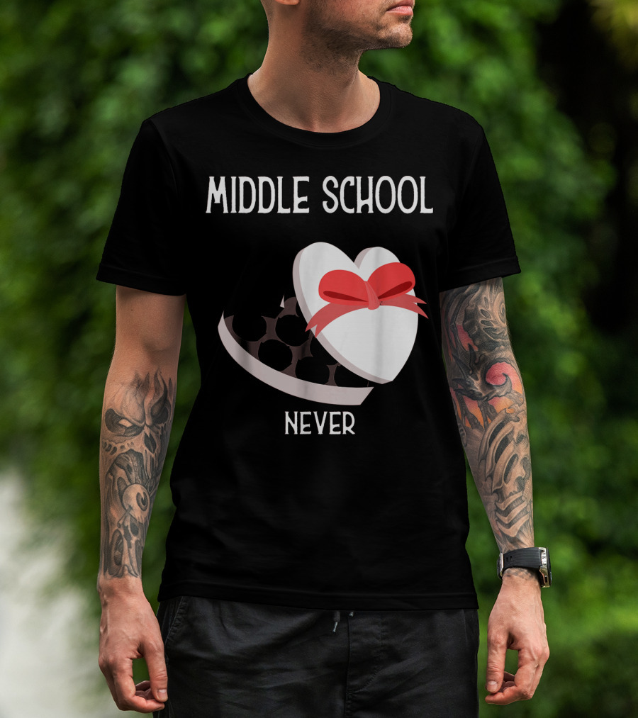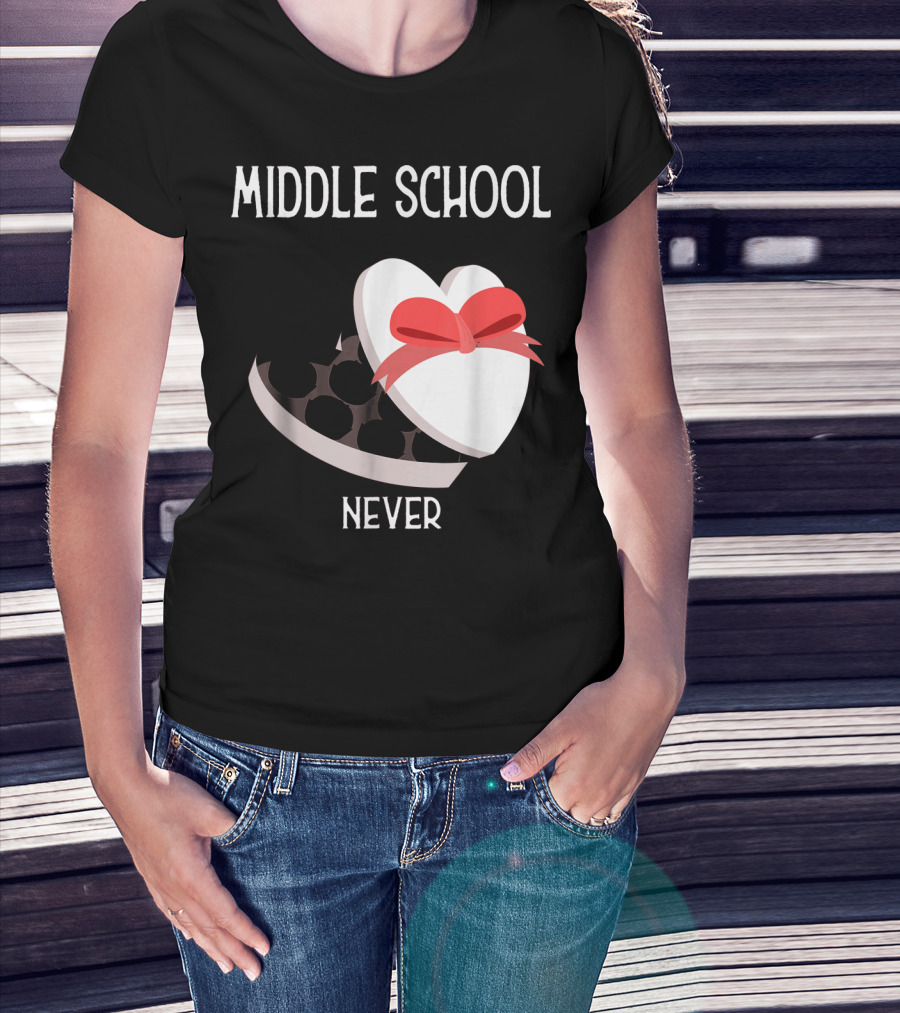 The Middle School Never Valentine Heart Box T-shirt is designed for everyday wear and a consistent fit. Fabric is pre-shrunk ring-spun cotton with durable stitching. See the size chart below for exact measurements.