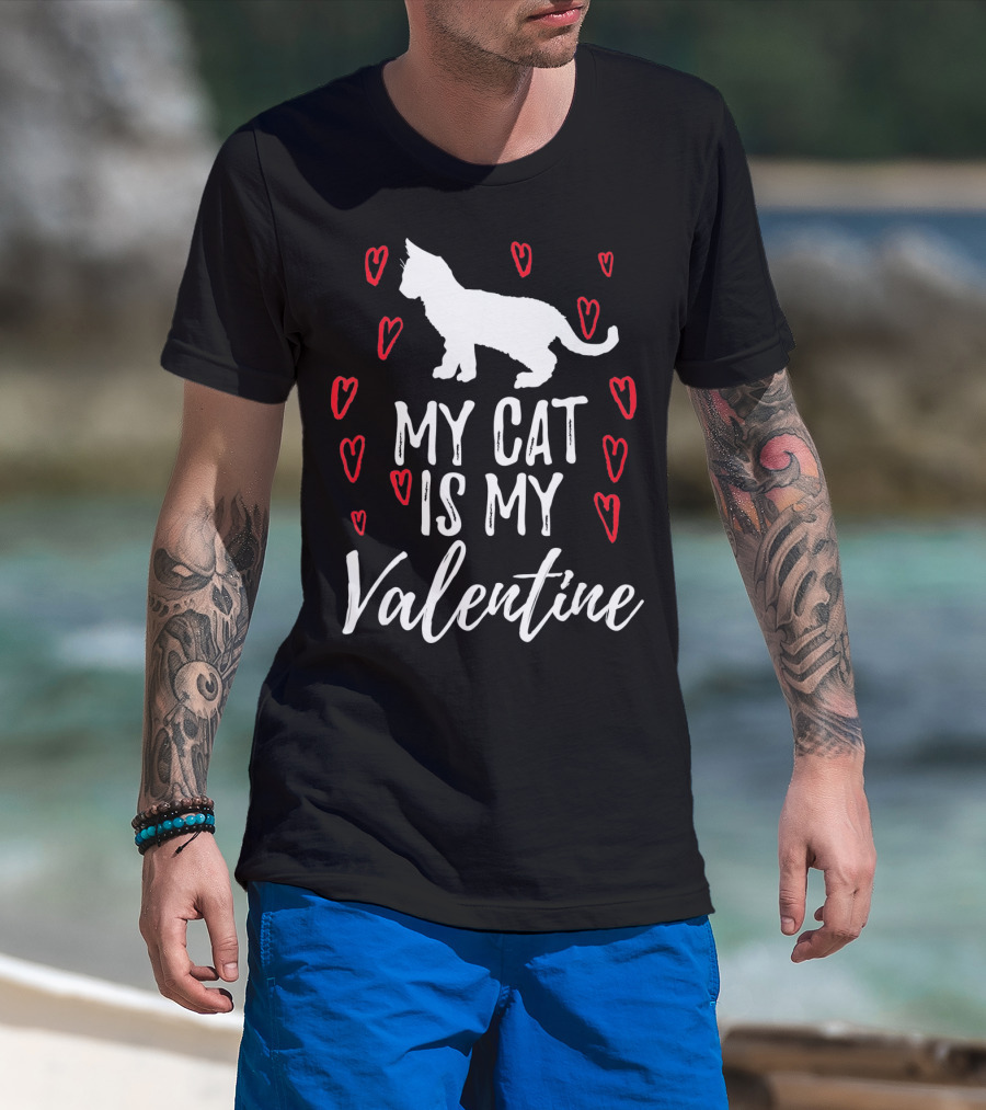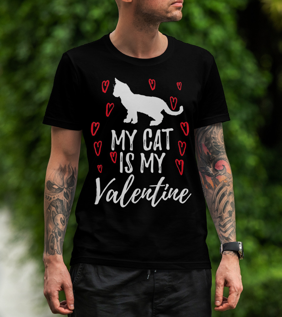 The My Cat is My Valentine Hearts T-shirt is designed for everyday wear and a consistent fit. Fabric is pre-shrunk ring-spun cotton with durable stitching. See the size chart below for exact measurements.