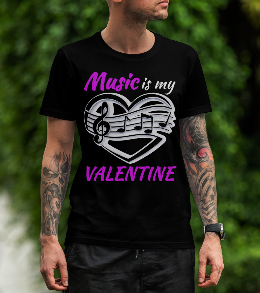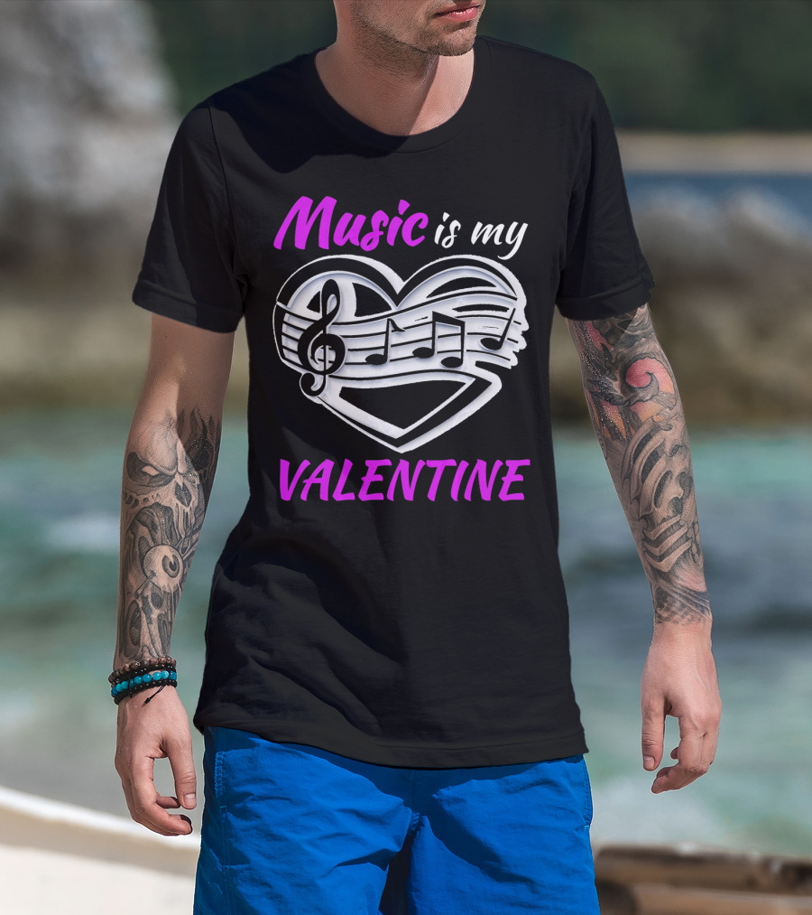 Music Is My Valentine Heart With Treble Clef And Notes T-Shirt