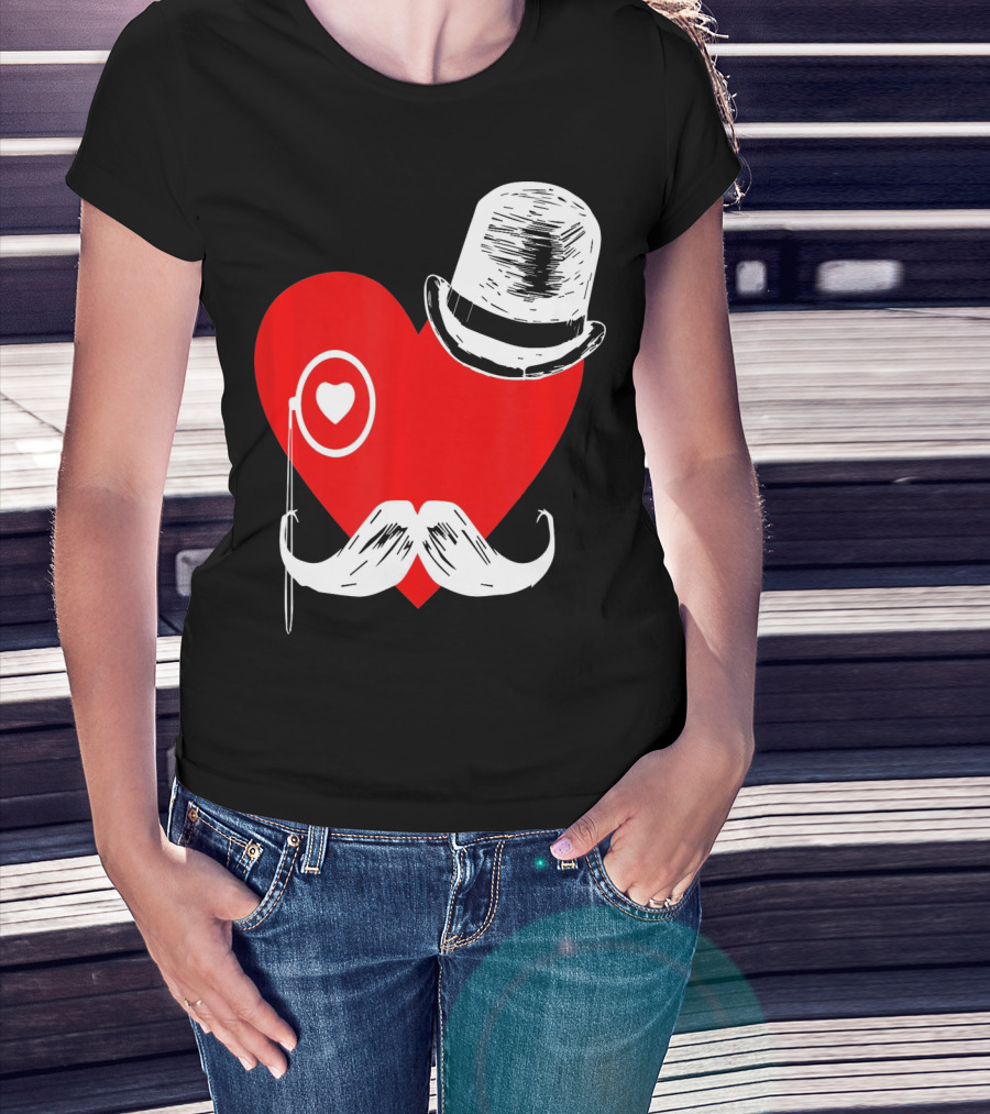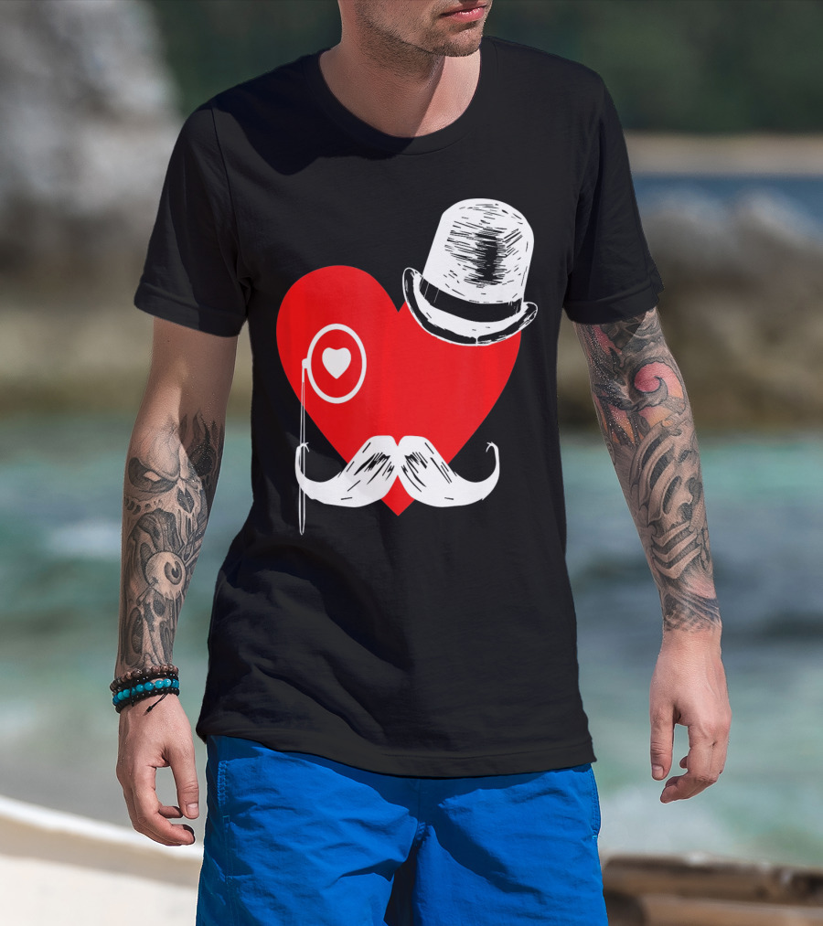 Heart Mustache Monocle Top Hat Valentines Day T-Shirt