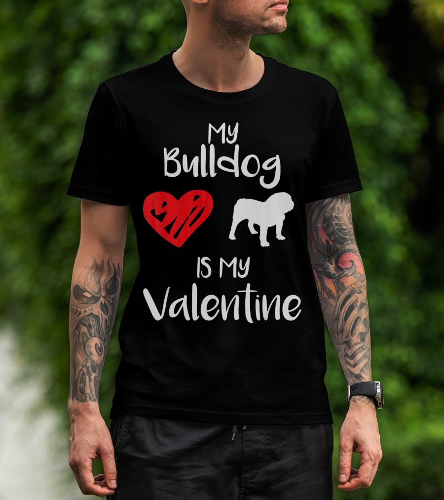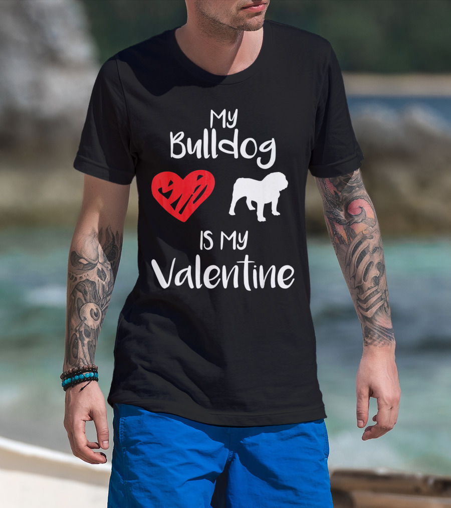 The My Bulldog Is My Valentine Heart T-shirt is designed for everyday wear and a consistent fit. Fabric is pre-shrunk ring-spun cotton with durable stitching. See the size chart below for exact measurements.