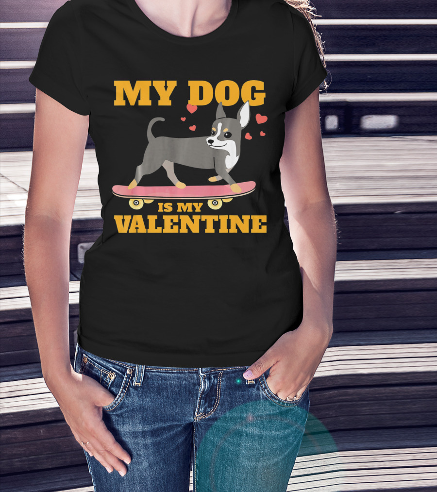 My Dog Is My Valentine Skateboarding Hearts T-Shirt