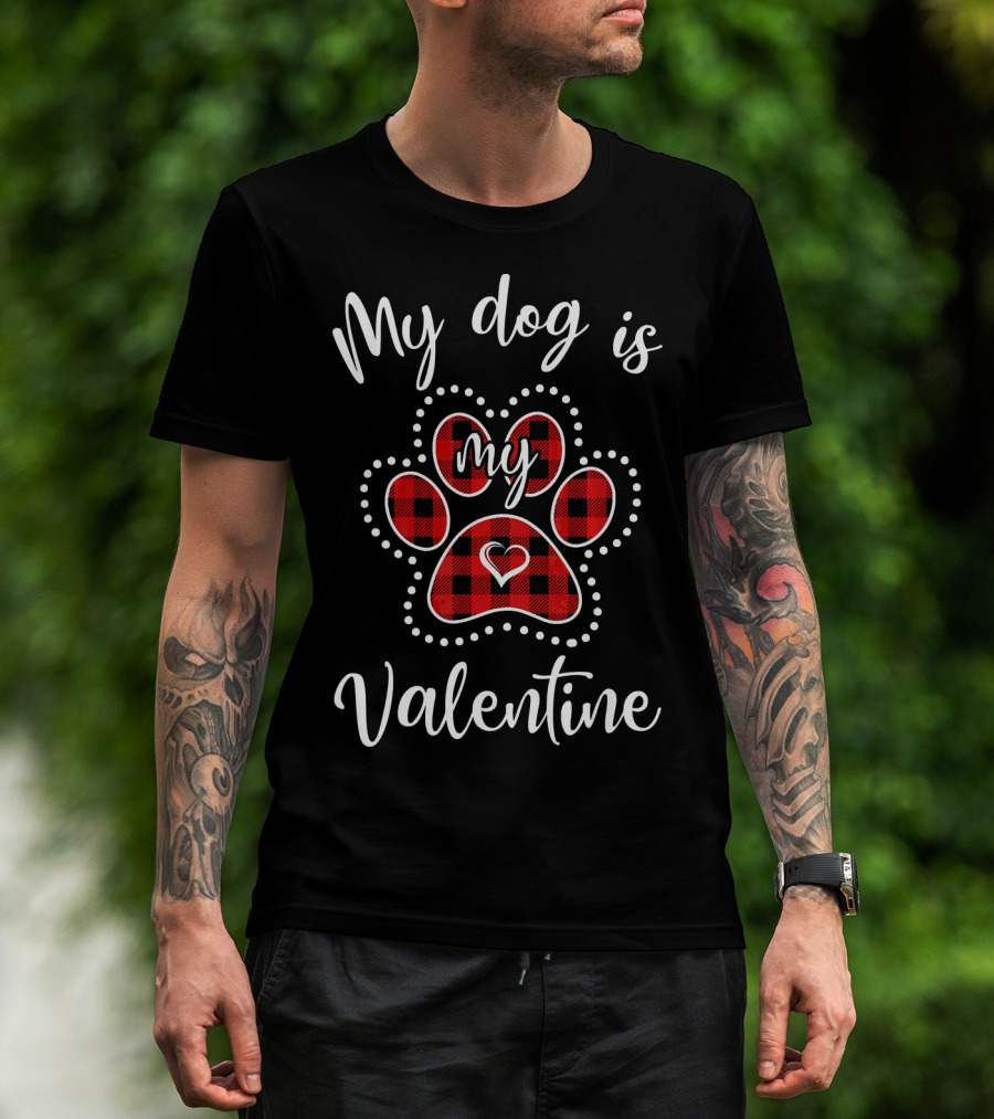 My Dog Is My Valentine My Dog Love Red Plaid Paw Heart T-Shirt