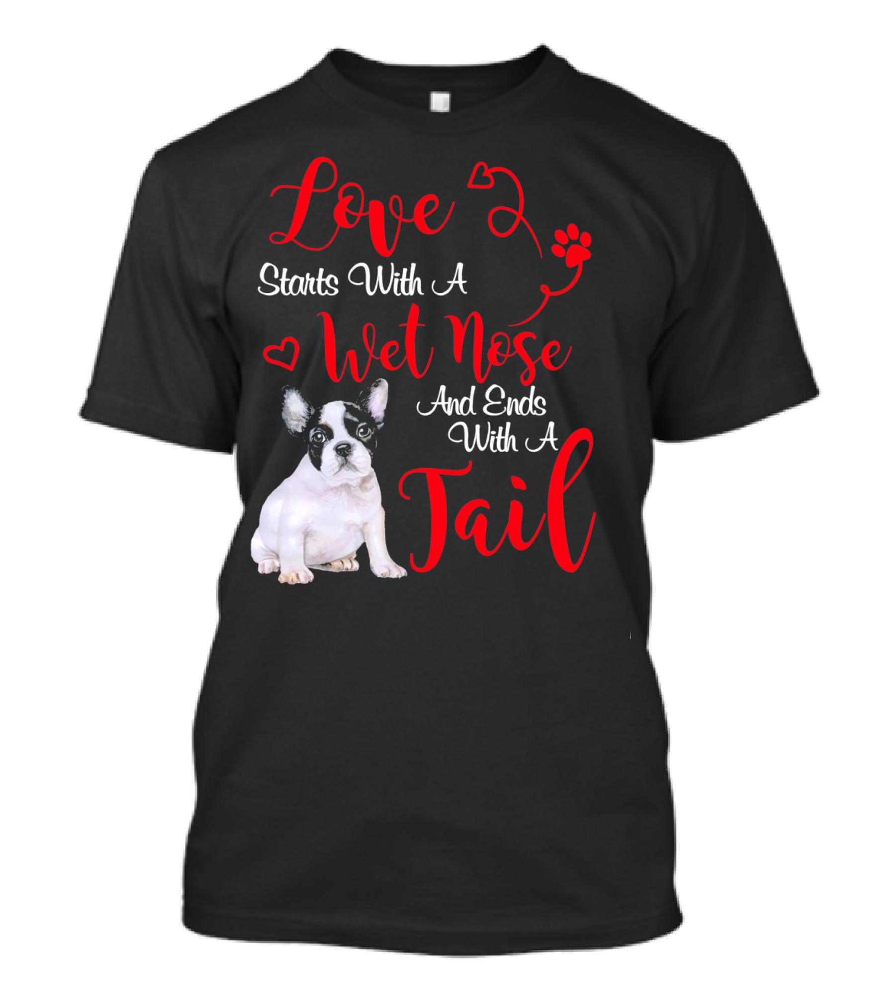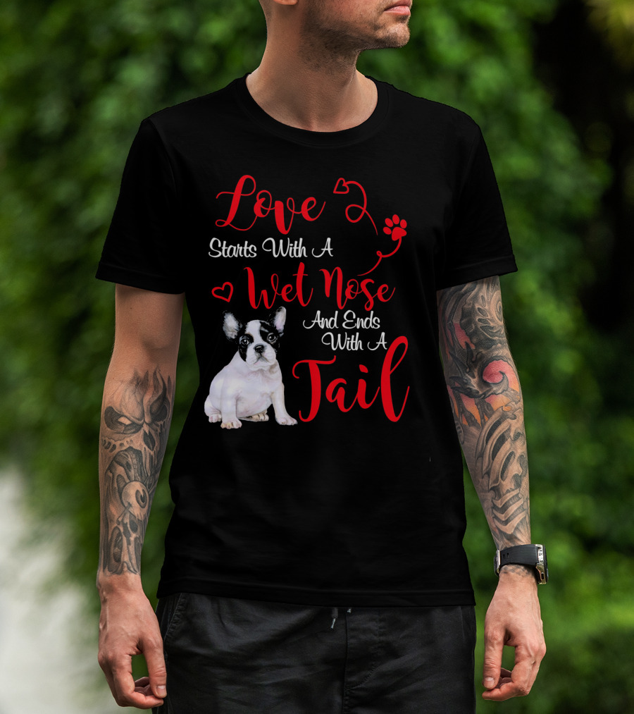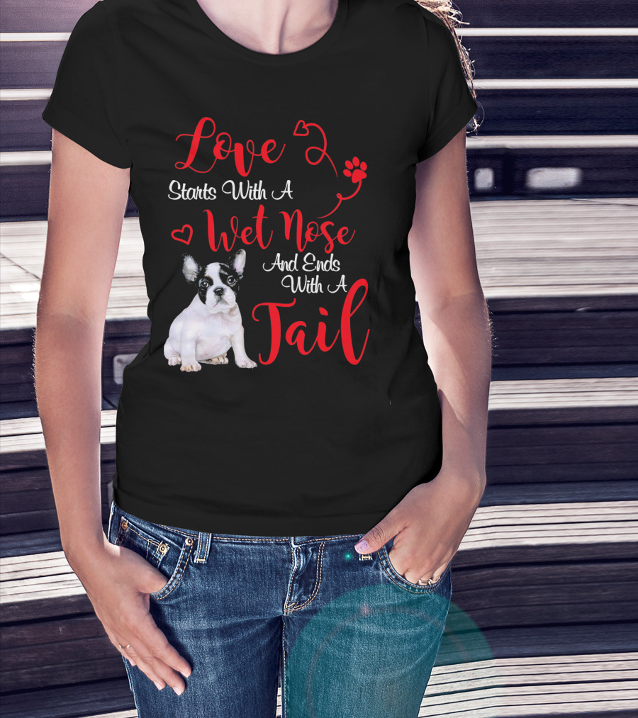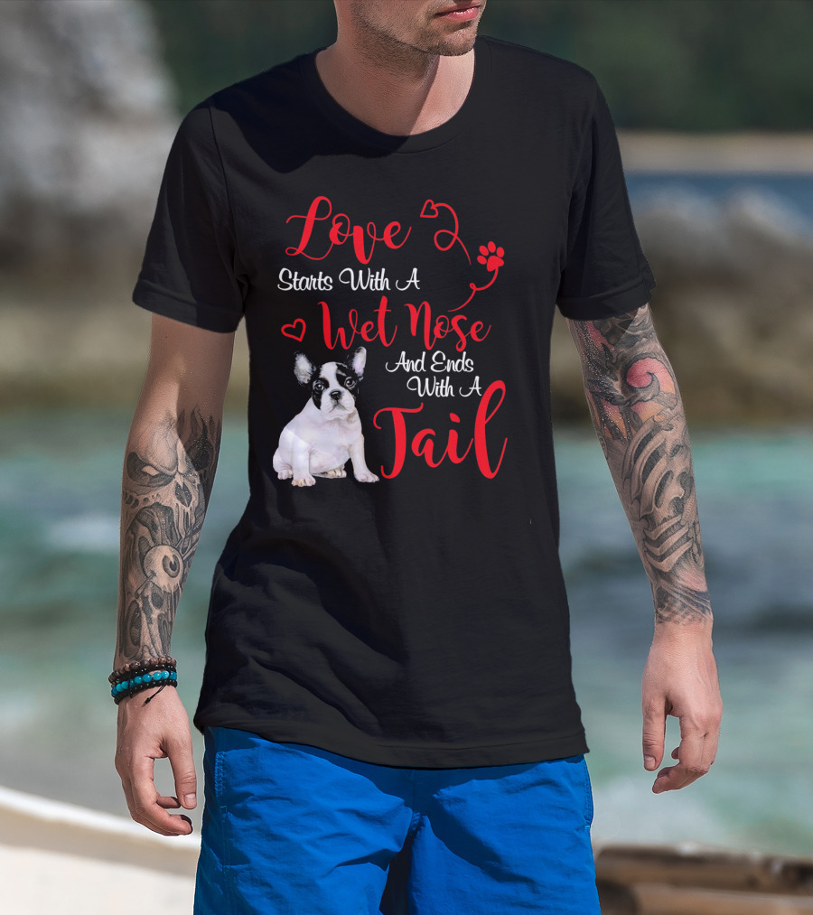 Love Starts With A Wet Nose And Ends With A Tail Boston Terrier Valentine's Day T-Shirt