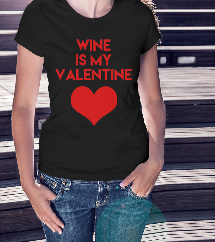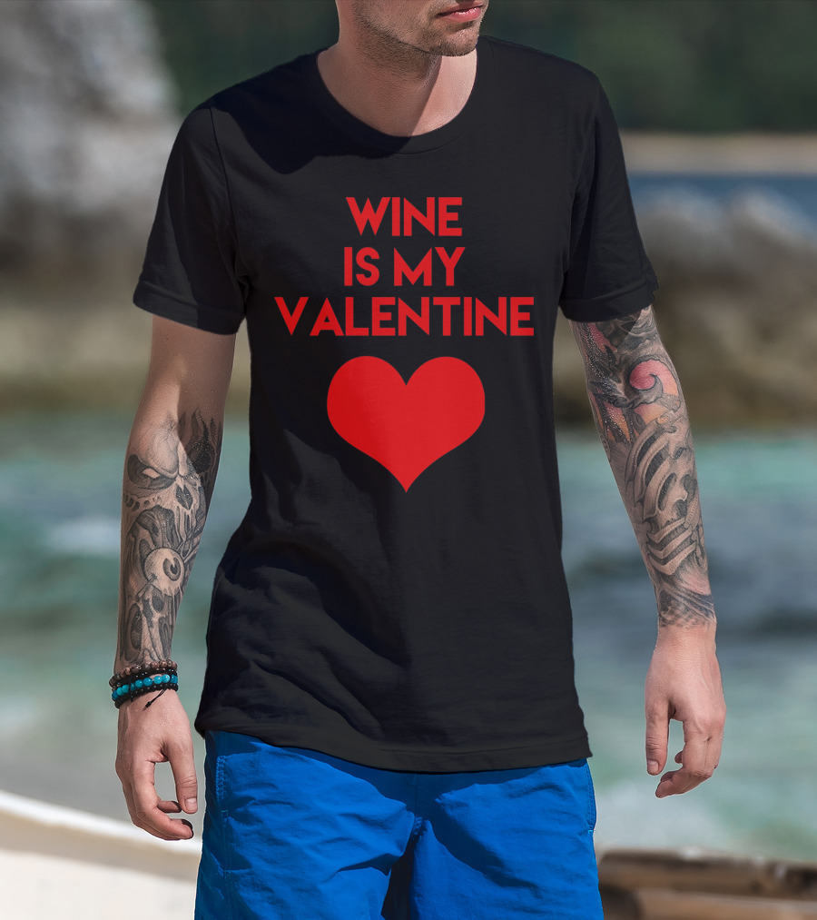 Wine Is My Valentine Red Heart Valentine's Day T-Shirt