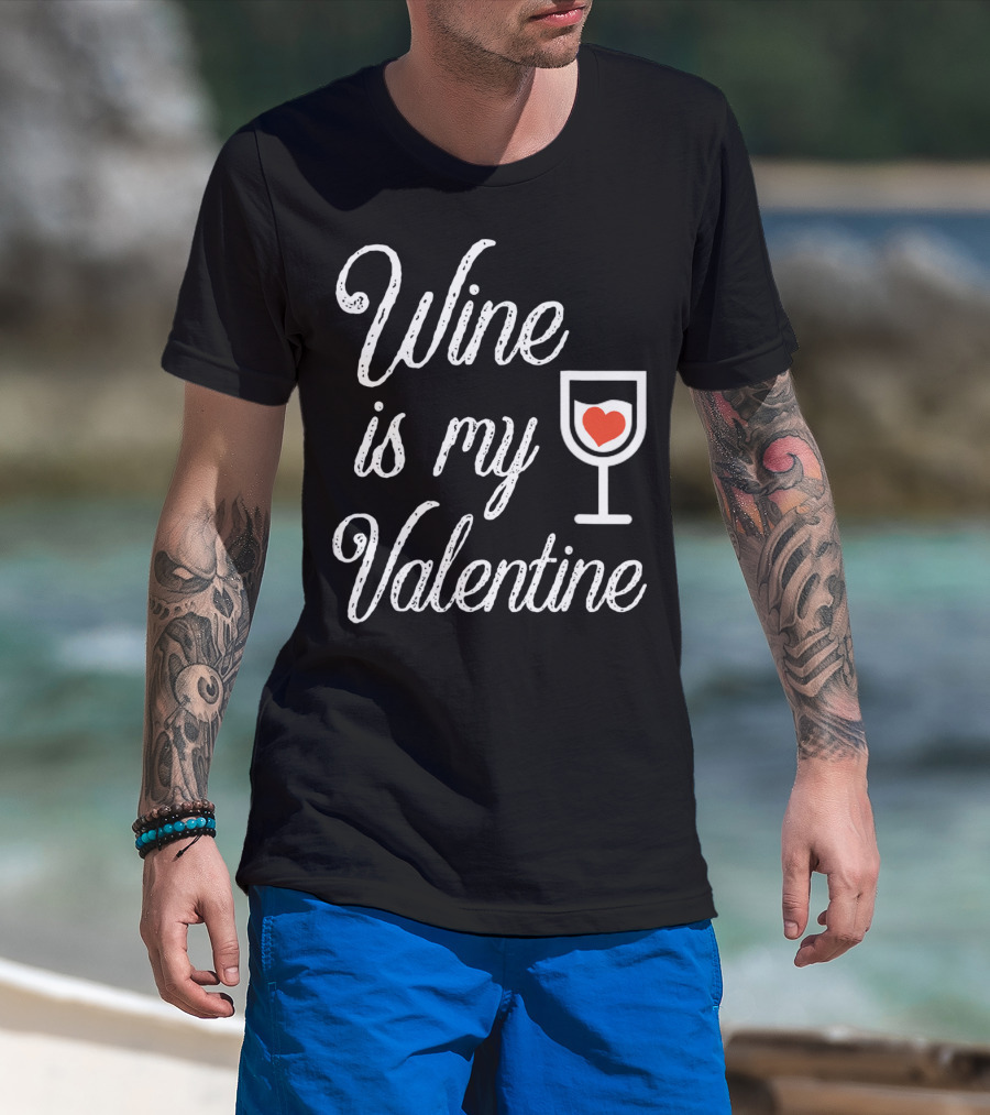Wine Is My Valentine With Heart In Glass T-Shirt