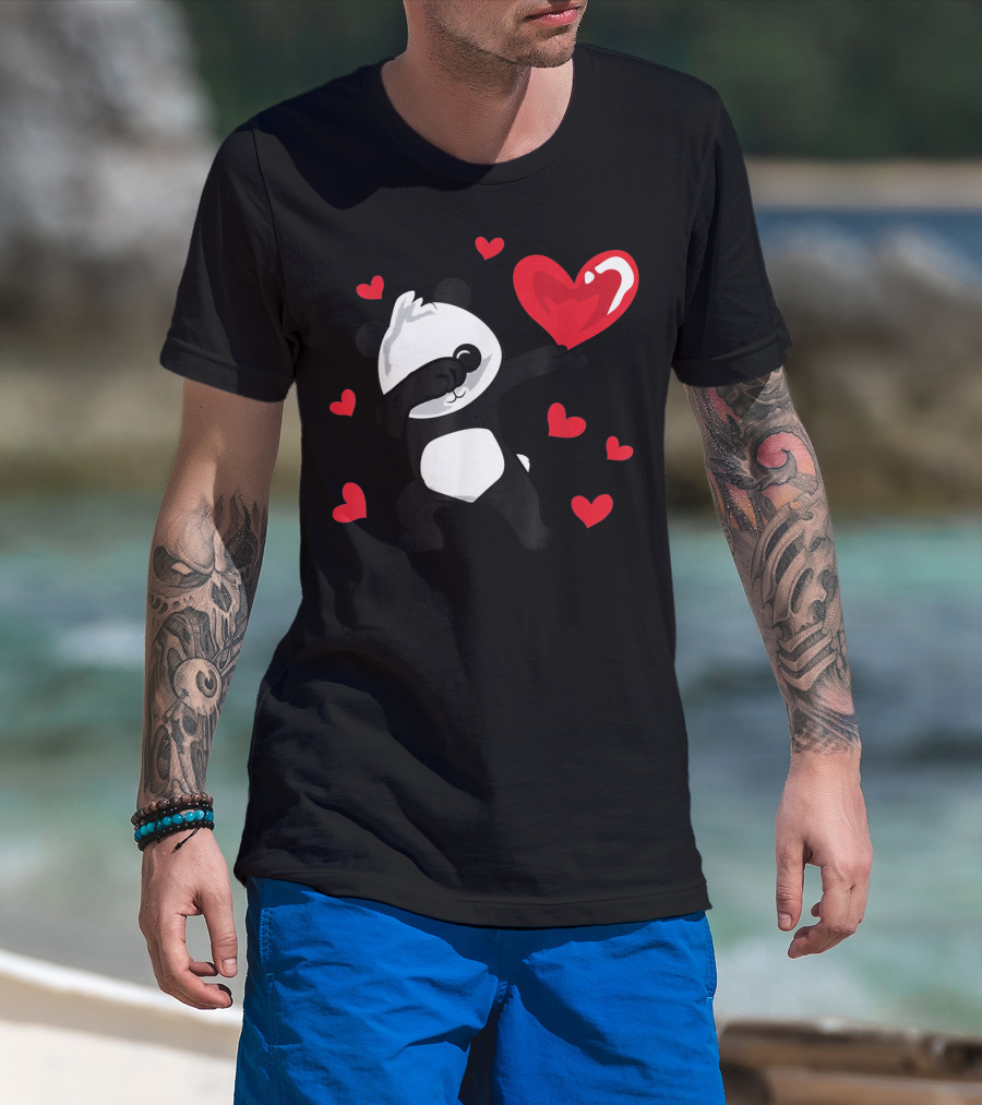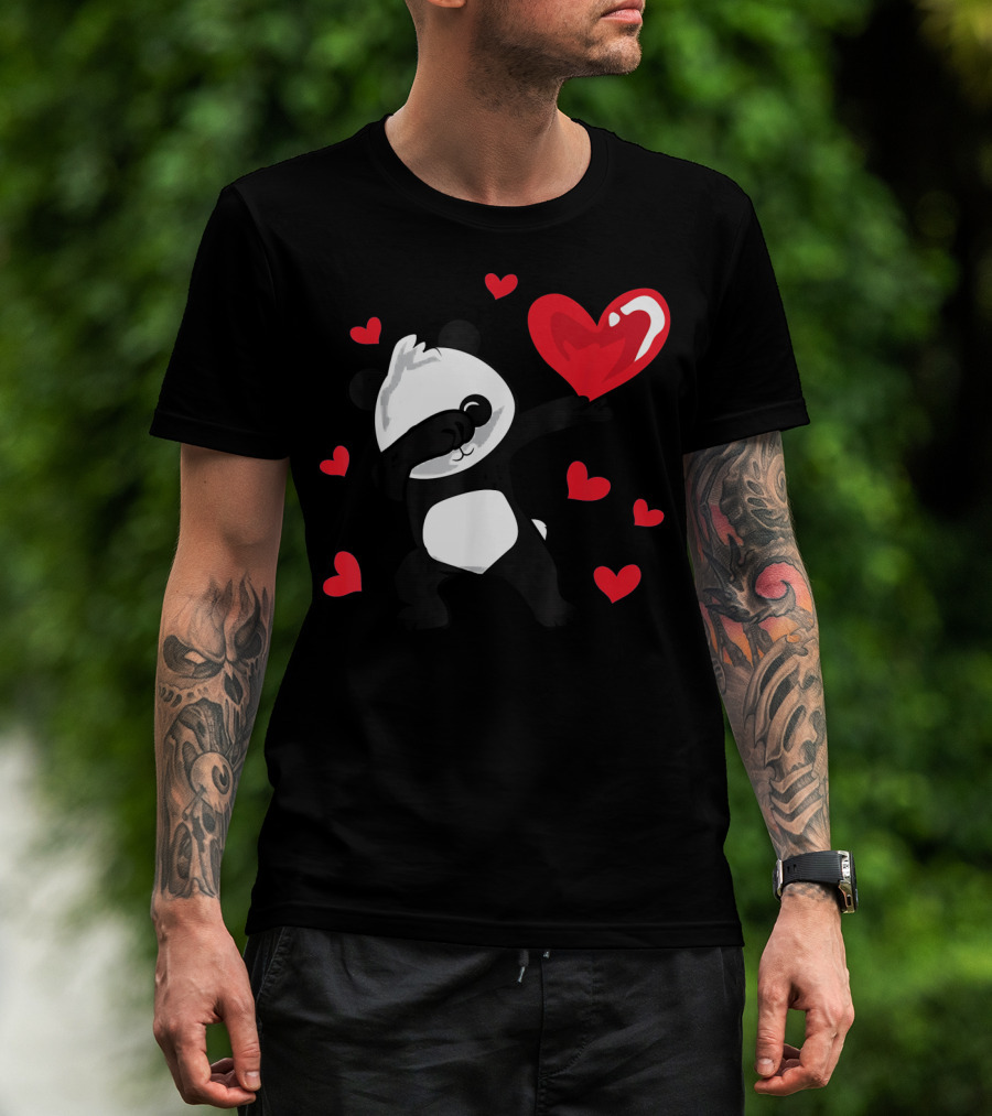 Dabbing Panda With Red Hearts Womens Girls T-Shirt