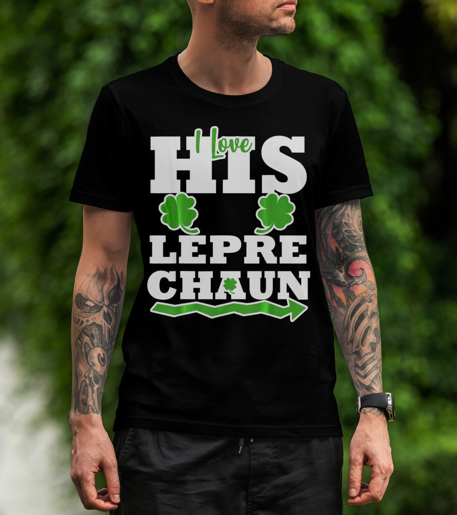 St Patricks Day Couples Love His Leprechaun Shamrock Arrow T-Shirt