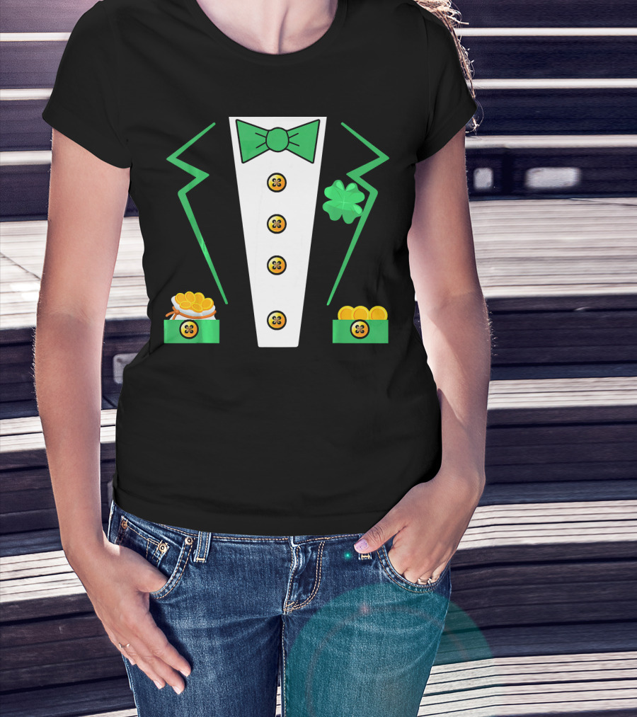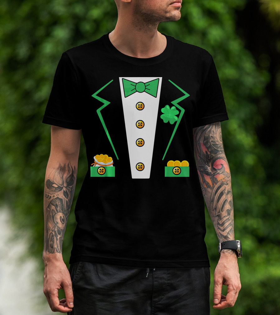 St. Patrick's Day Leprechaun Tuxedo With Shamrock And Coin Boxes T-Shirt