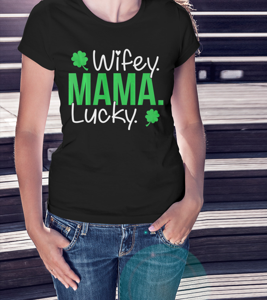Wifey Mama Lucky Mommy St Patrick's Day With Shamrocks T-Shirt