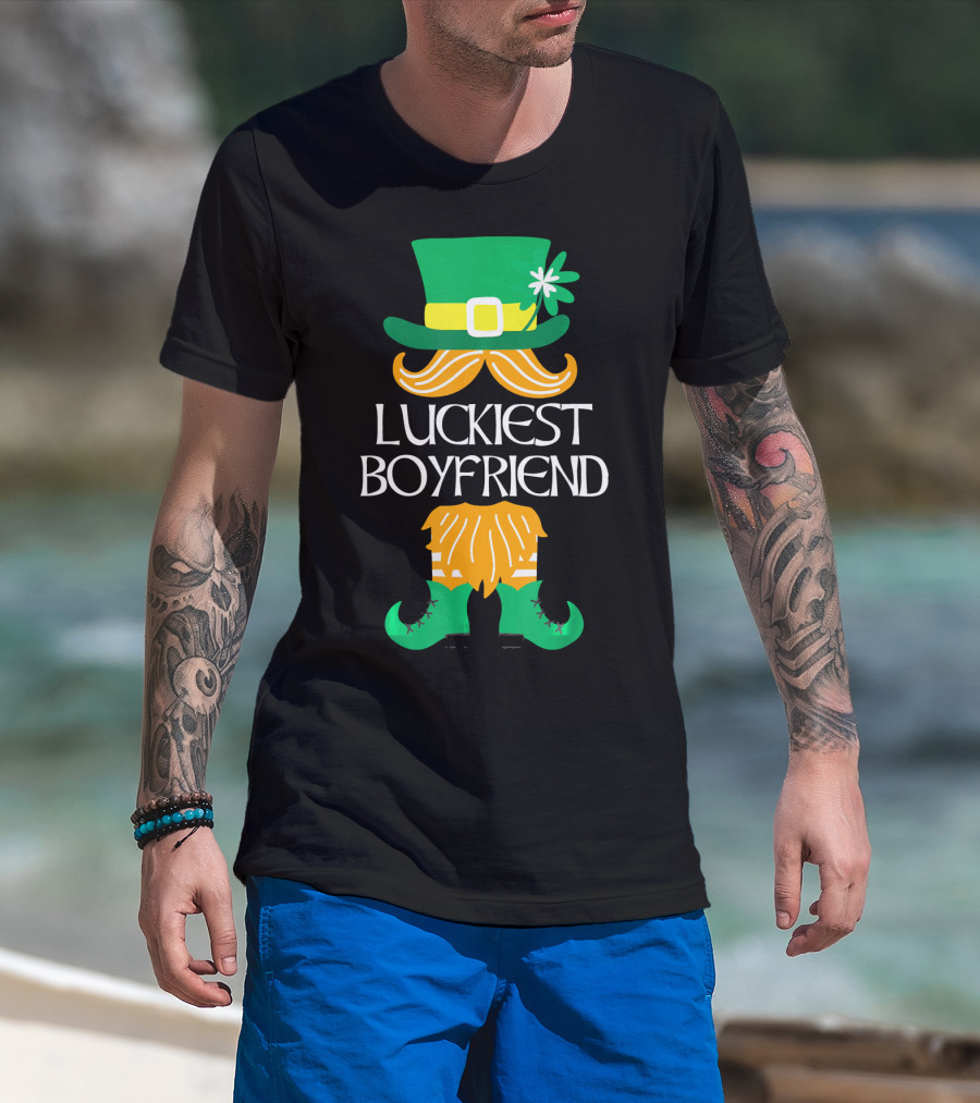 Luckiest Boyfriend Leprechaun Green Hat And Orange Beard St. Patrick's Day T-Shirt