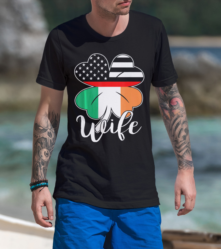 St. Patrick's Day Irish American Flag Firefighter Wife Shamrock T-Shirt