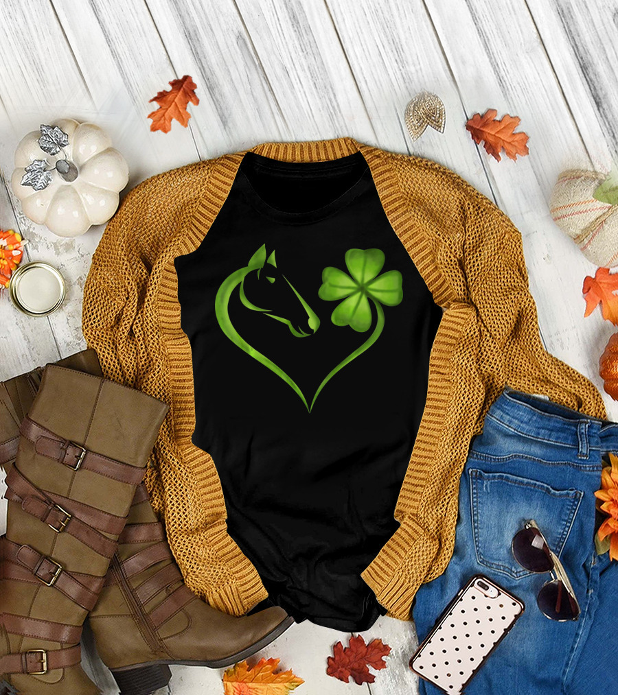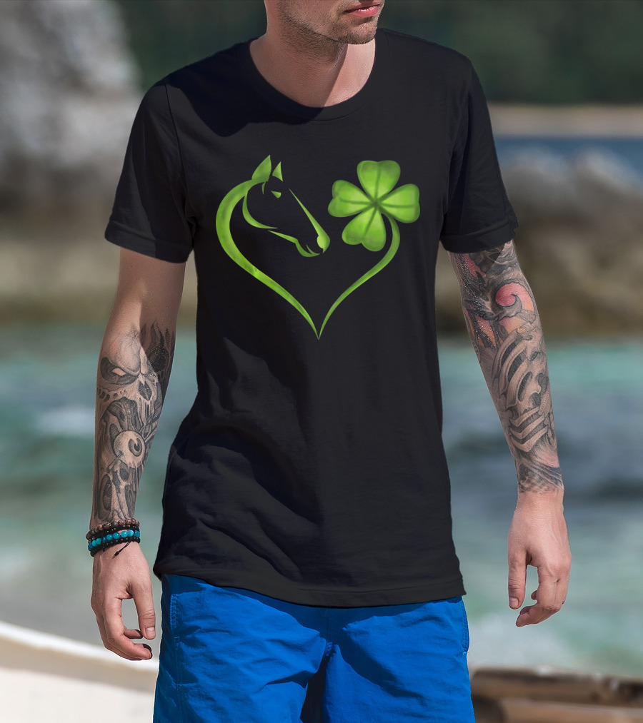 Horse Lucky Clover Heart Shape St. Patrick's Day T-Shirt