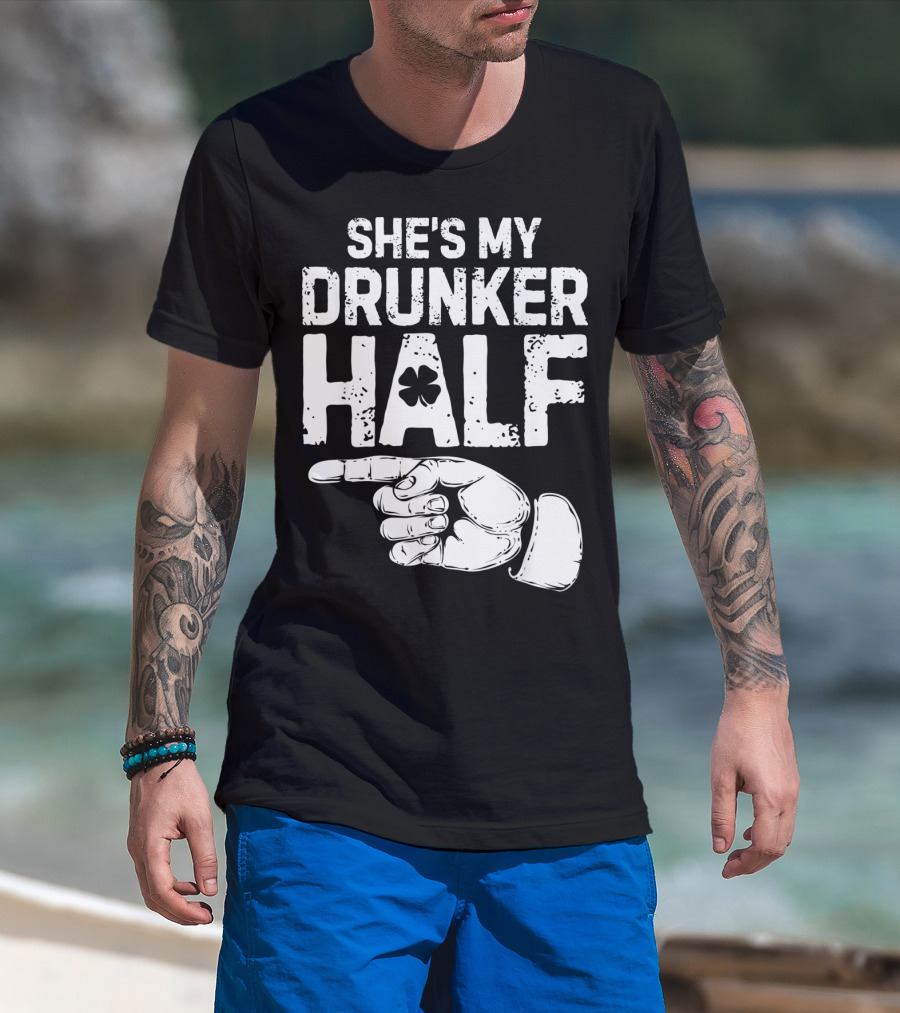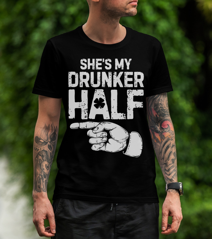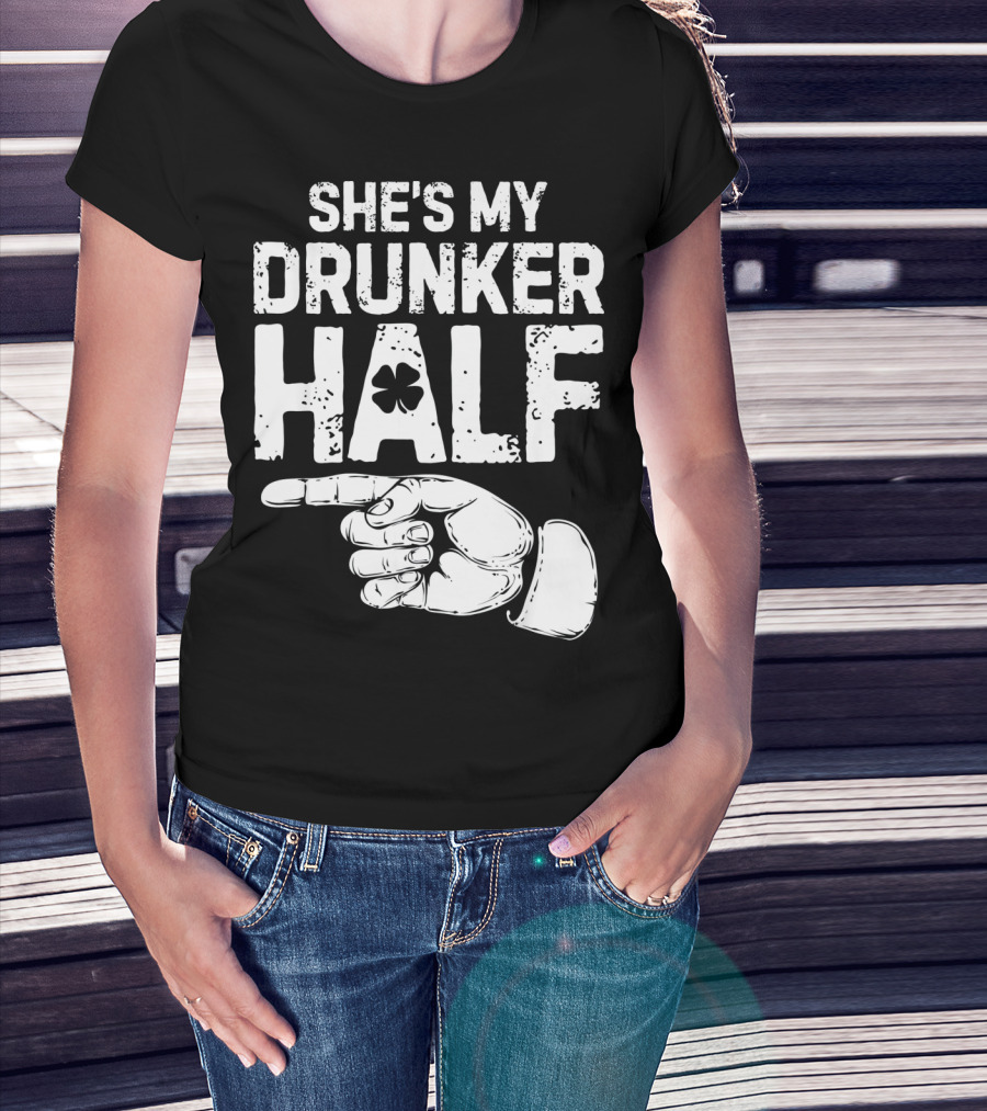 St Patricks Day She's My Drunker Half Shamrock Hand Pointer T-Shirt