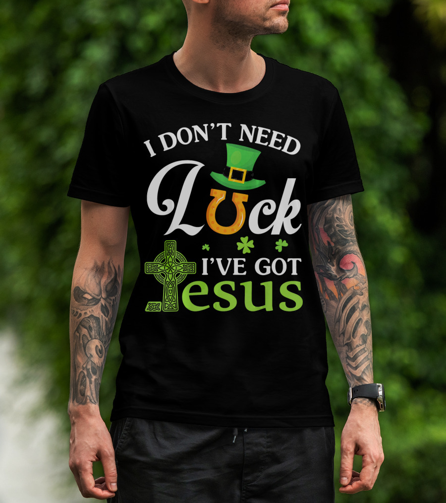 I Don't Need Luck Leprechaun Hat Shamrock I've Got Jesus T-Shirt