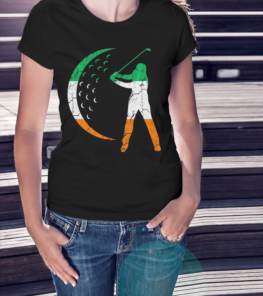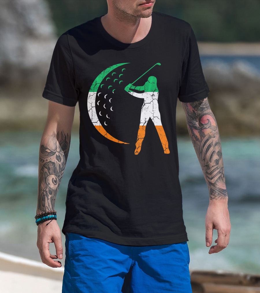 Irish Golf Swing With Ireland Flag Colors T-Shirt