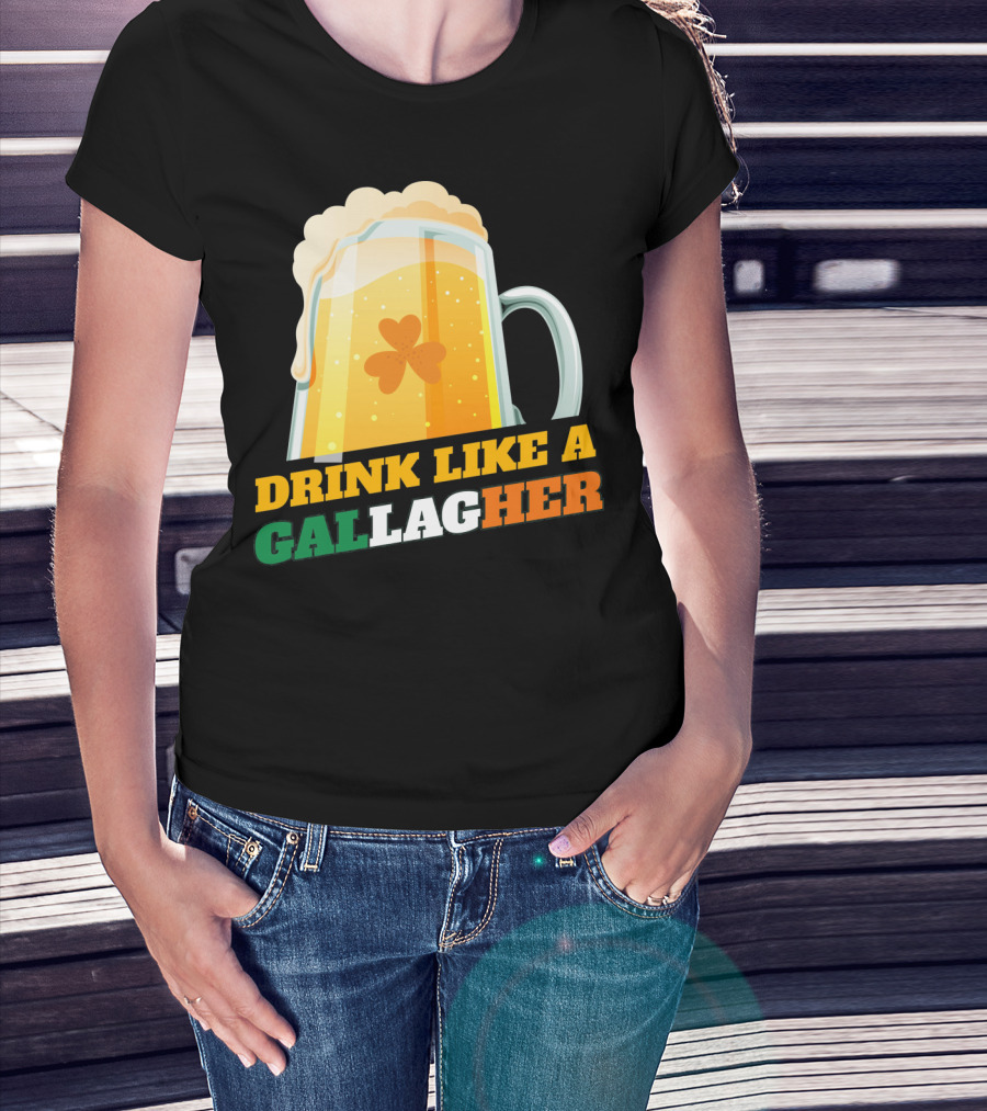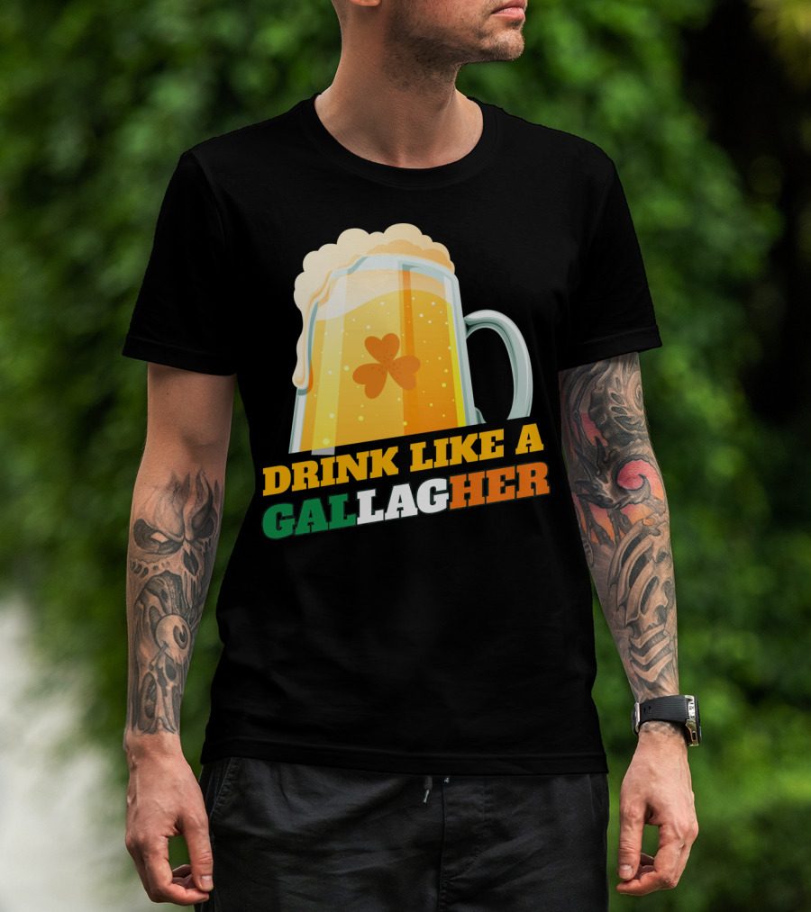Drink Like A GallagHer Saint Patricks Day Beer Mug Shamrock T-Shirt