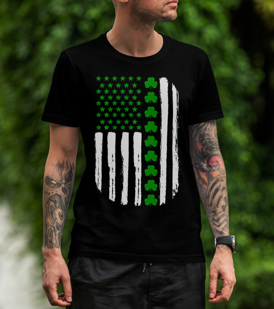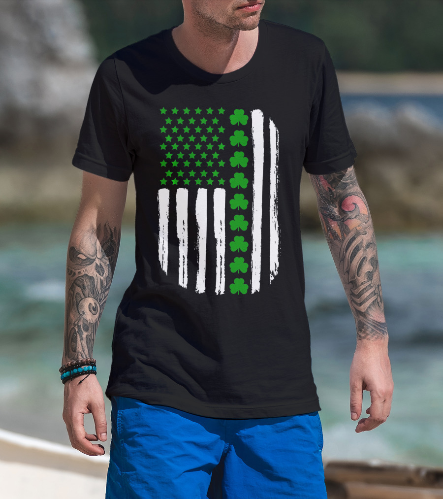 USA Flag With Green 4 Leaf Clover For St. Patrick Day T-Shirt