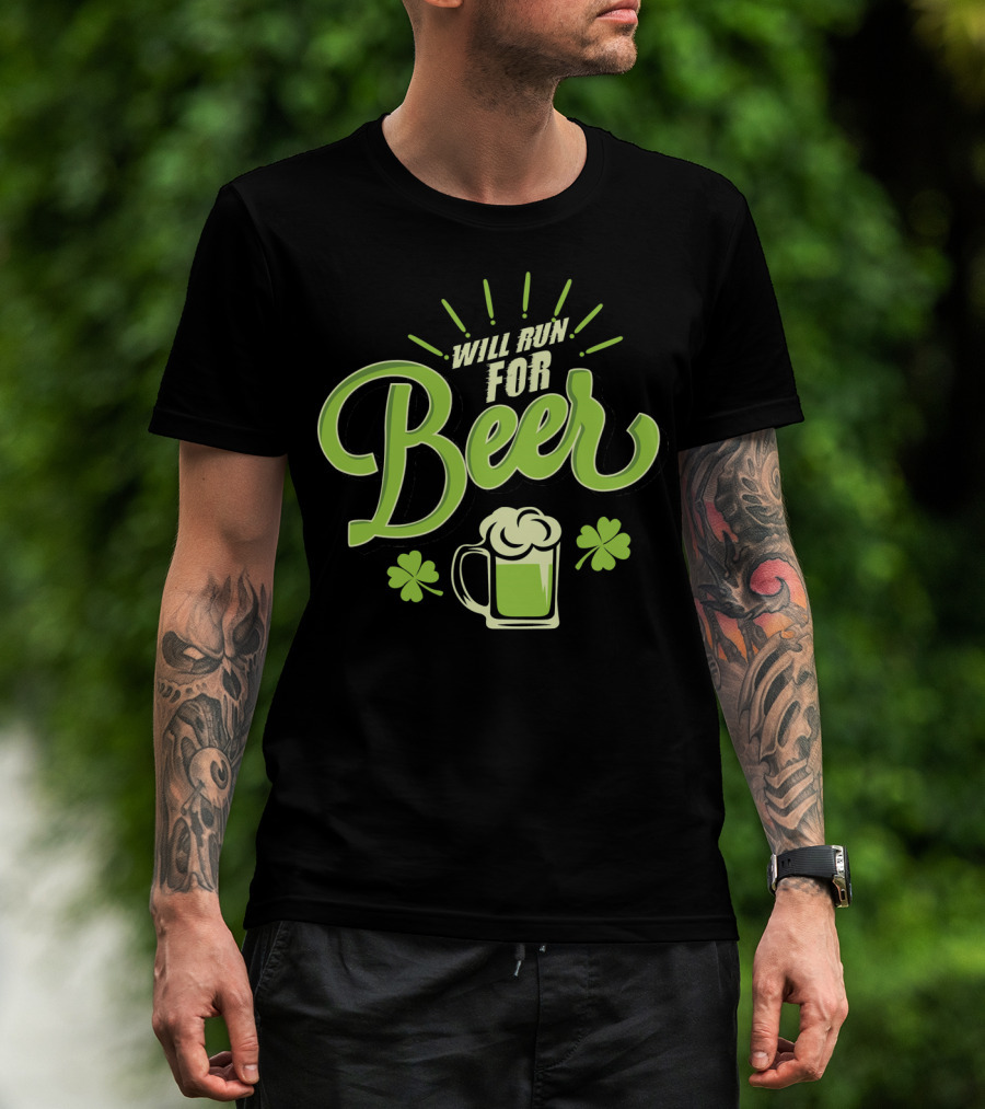 St Patricks Day Will Run For Beer With Shamrocks And Green Beer Mug T-Shirt