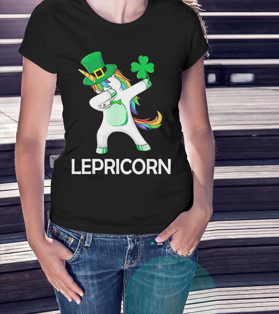 Lepricorn Unicorn Leprechaun Dabbing With Shamrock And Green Hat T-Shirt