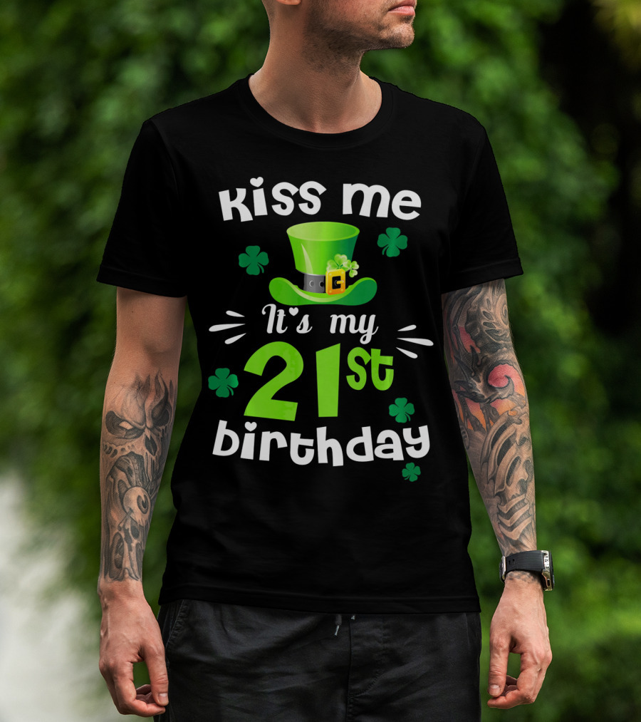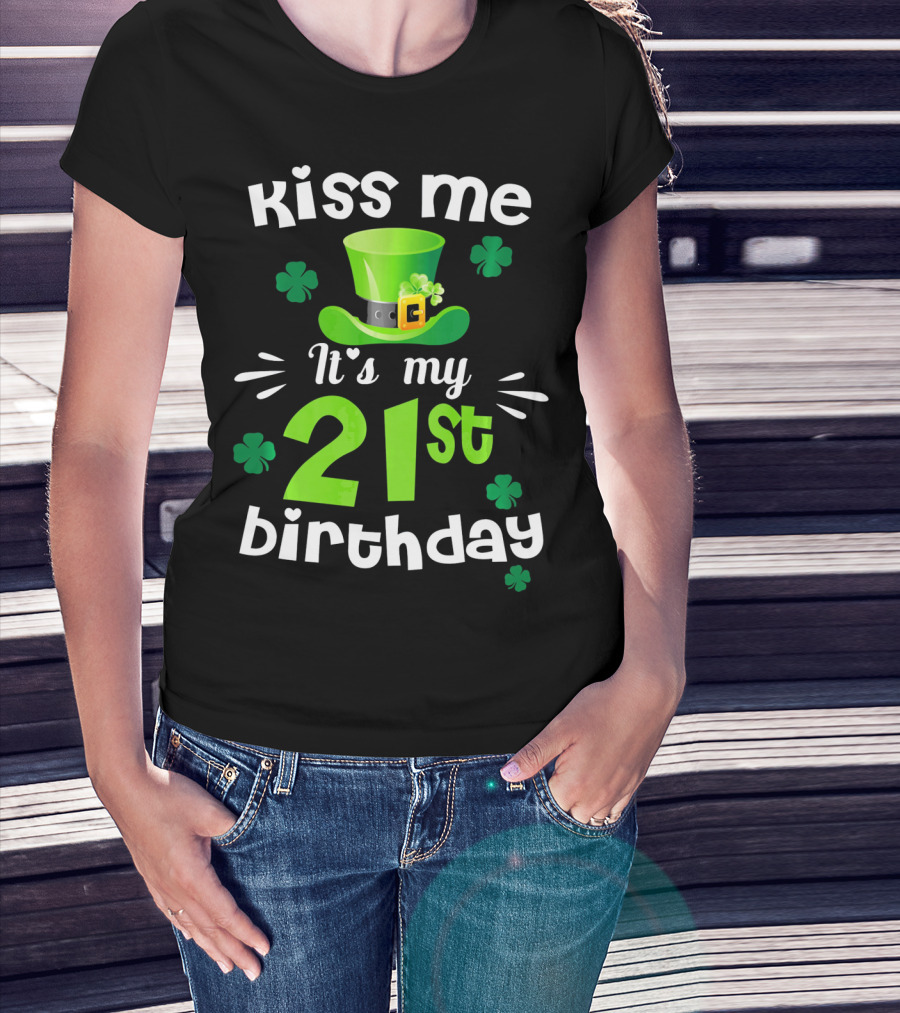 Kiss Me It's My 21st Birthday With Green Hat And Clovers T-Shirt