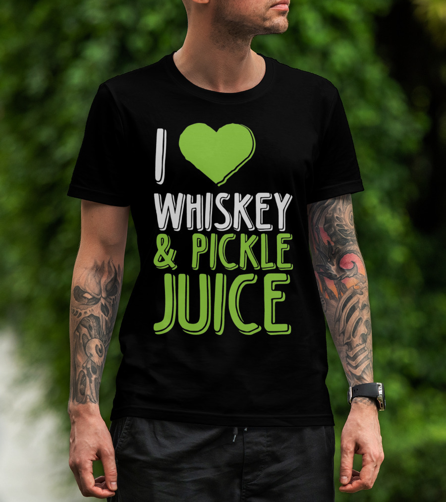 I Love Whiskey And Pickle Juice Funny Pickleback St Patrick's Day T-Shirt