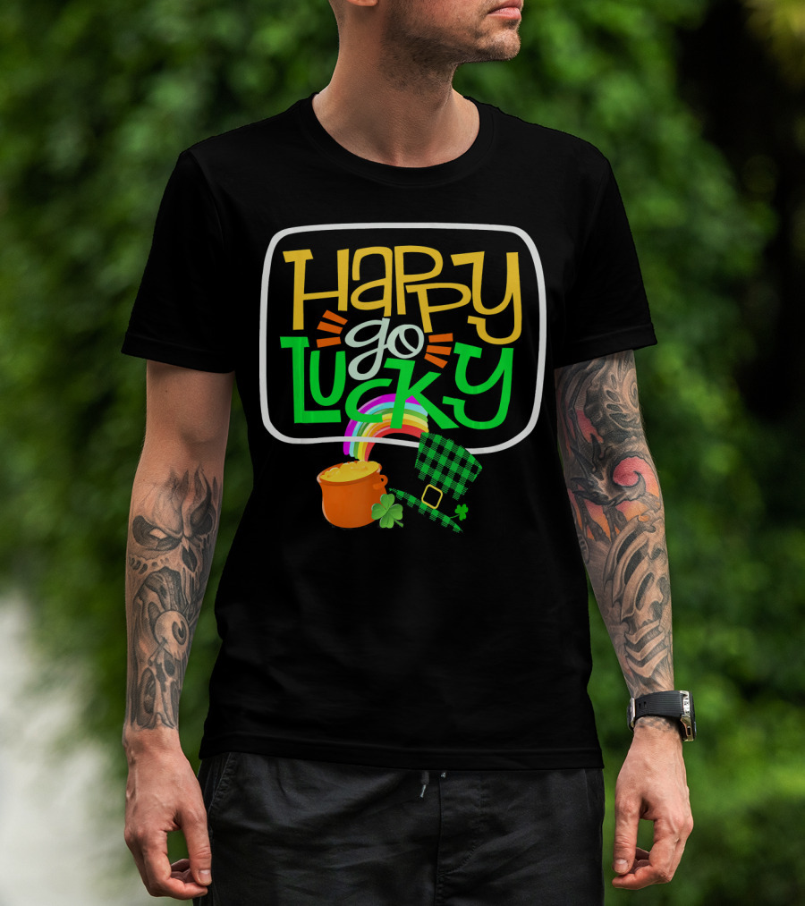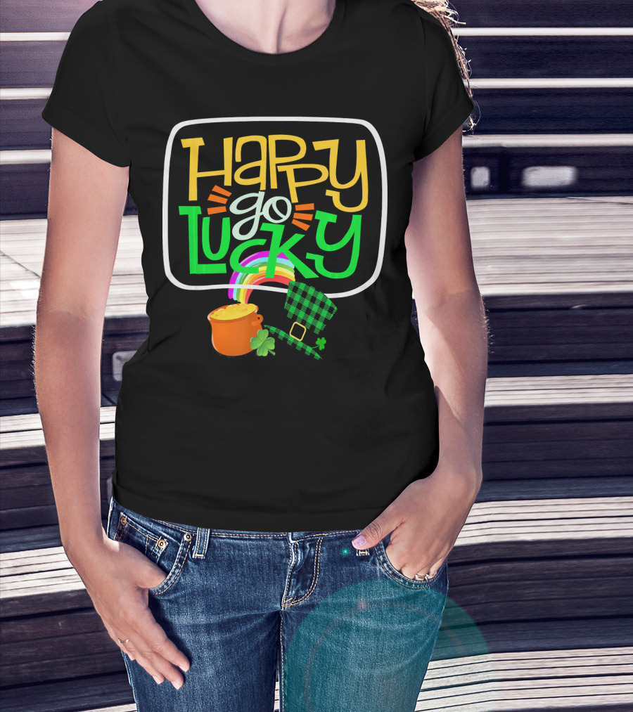 Happy Go Lucky Clover Pot Of Gold Rainbow St Patrick T-Shirt