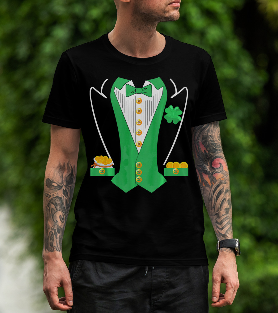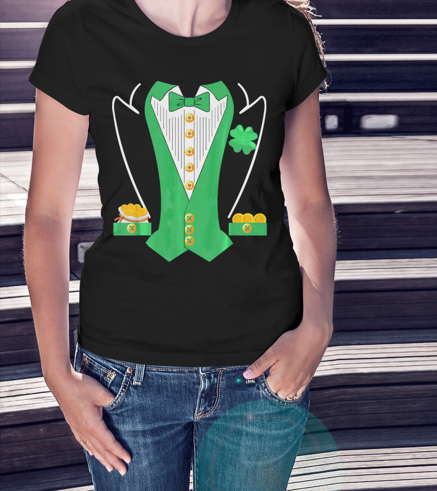 Leprechaun Costume Girl Green Suit Bow Tie Clover Gold Coins T-Shirt
