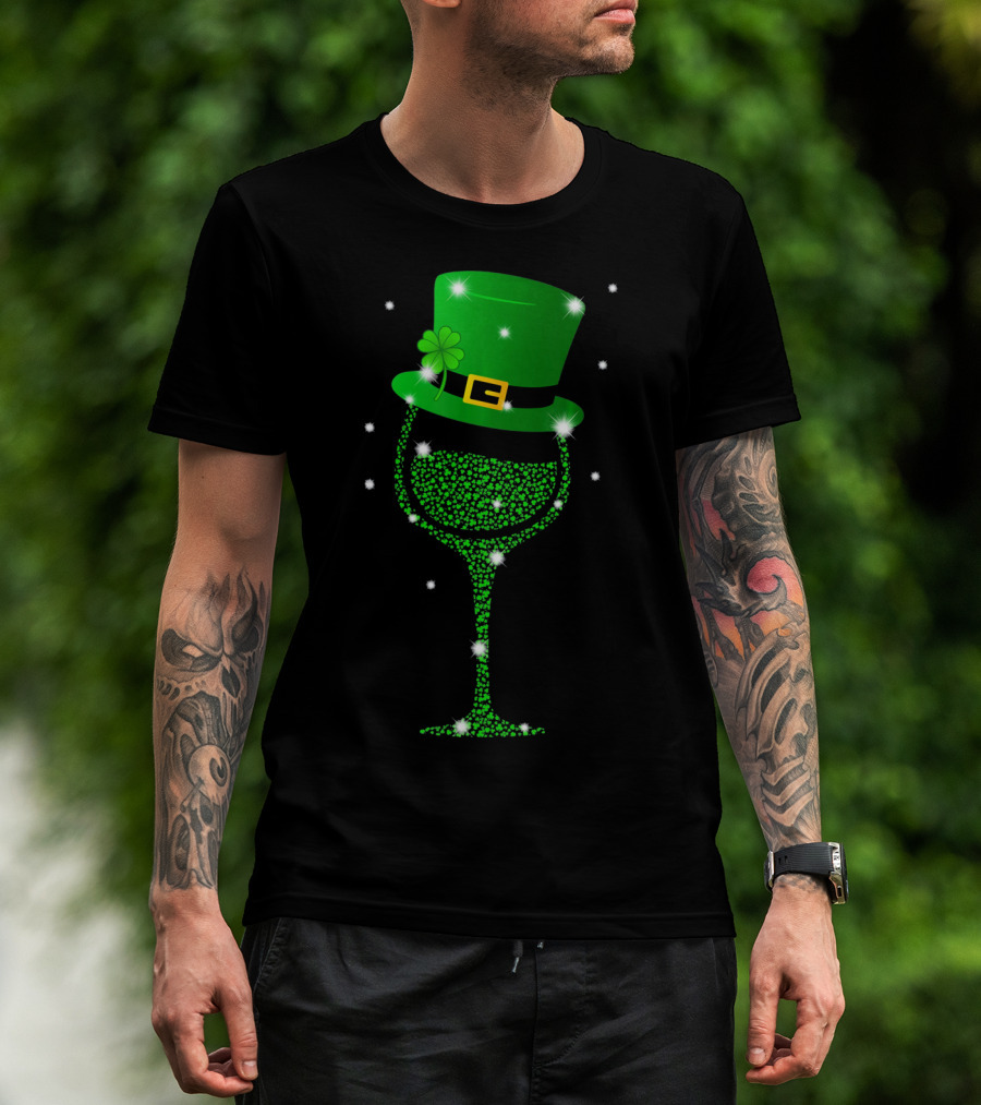 Shamrock Wine Glass St. Patrick's Day Top Hat Sparkle T-Shirt