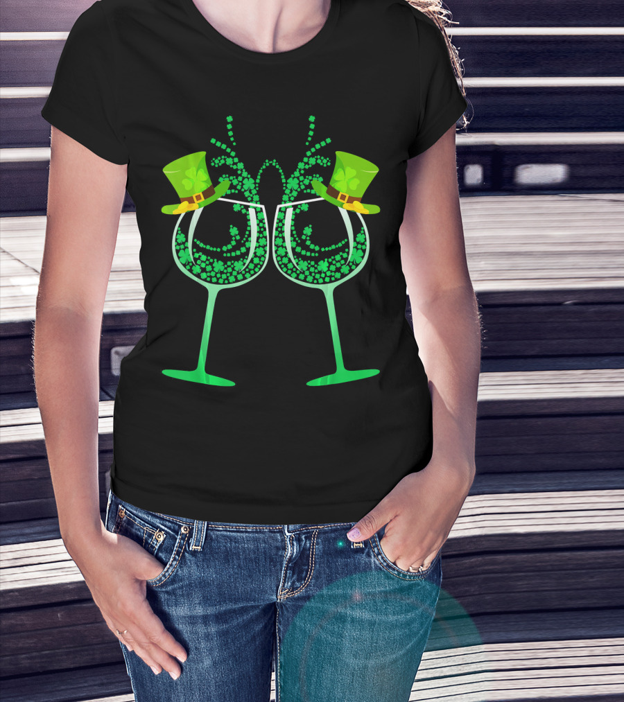 Wine Glass Leprechaun Shamrock Funny Drinking T-Shirt