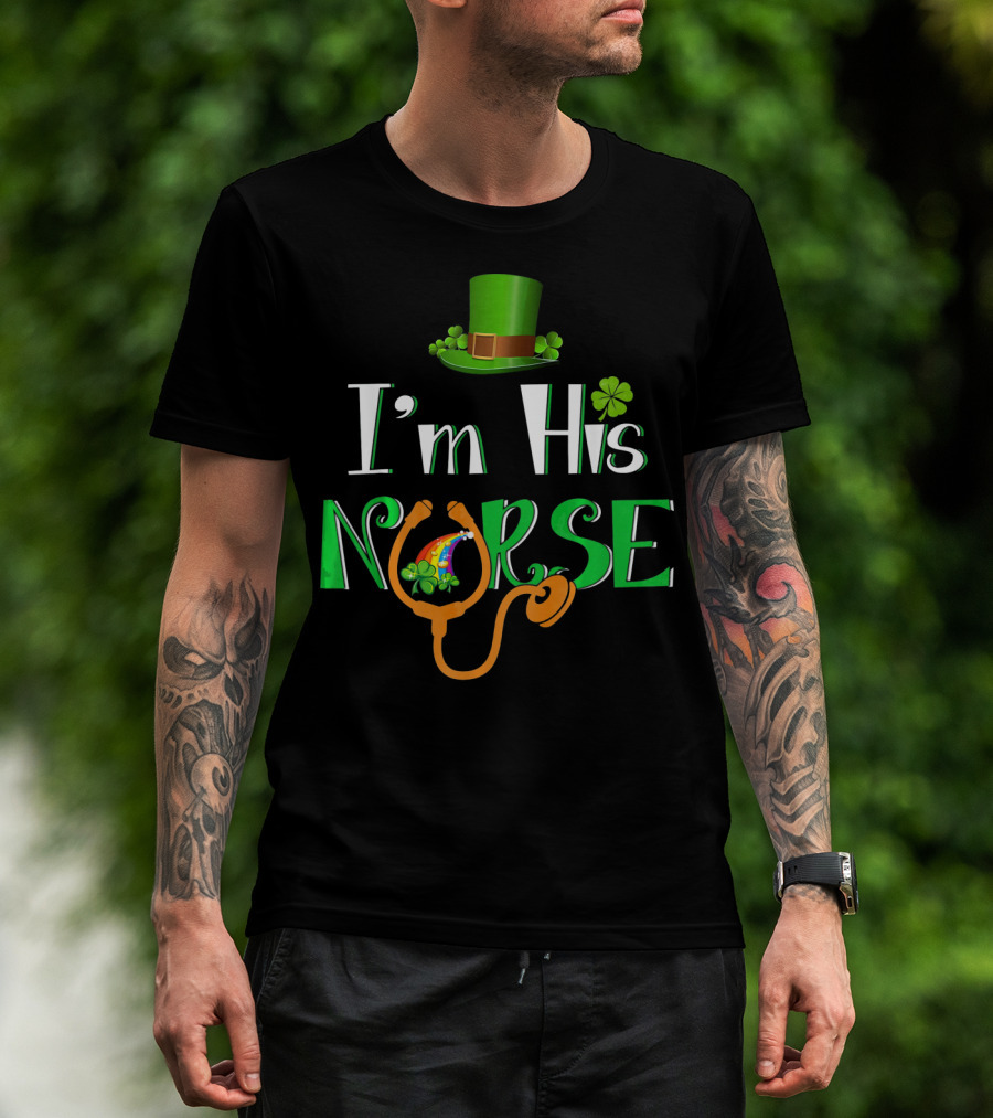 I'm His Nurse St Patrick's Hat Clover Stethoscope T-Shirt