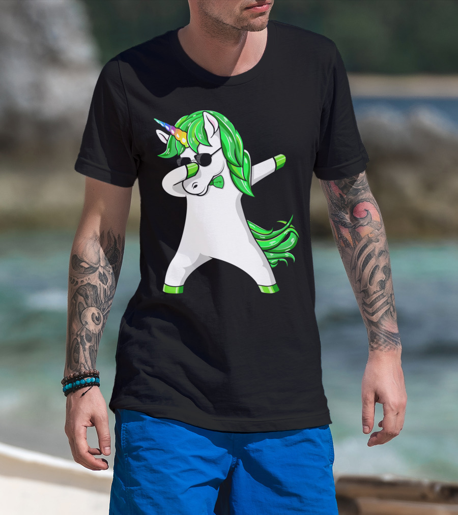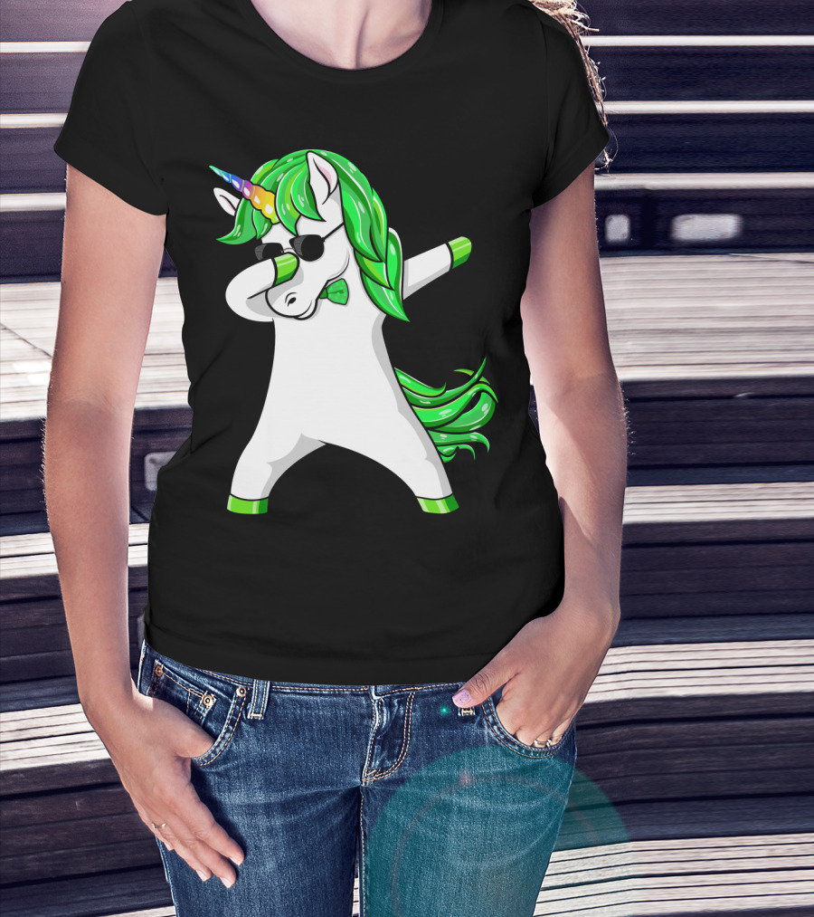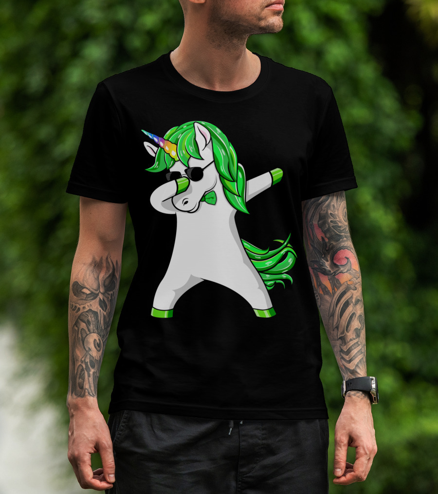 St Patricks Day Dabbing Green Unicorn T-Shirt