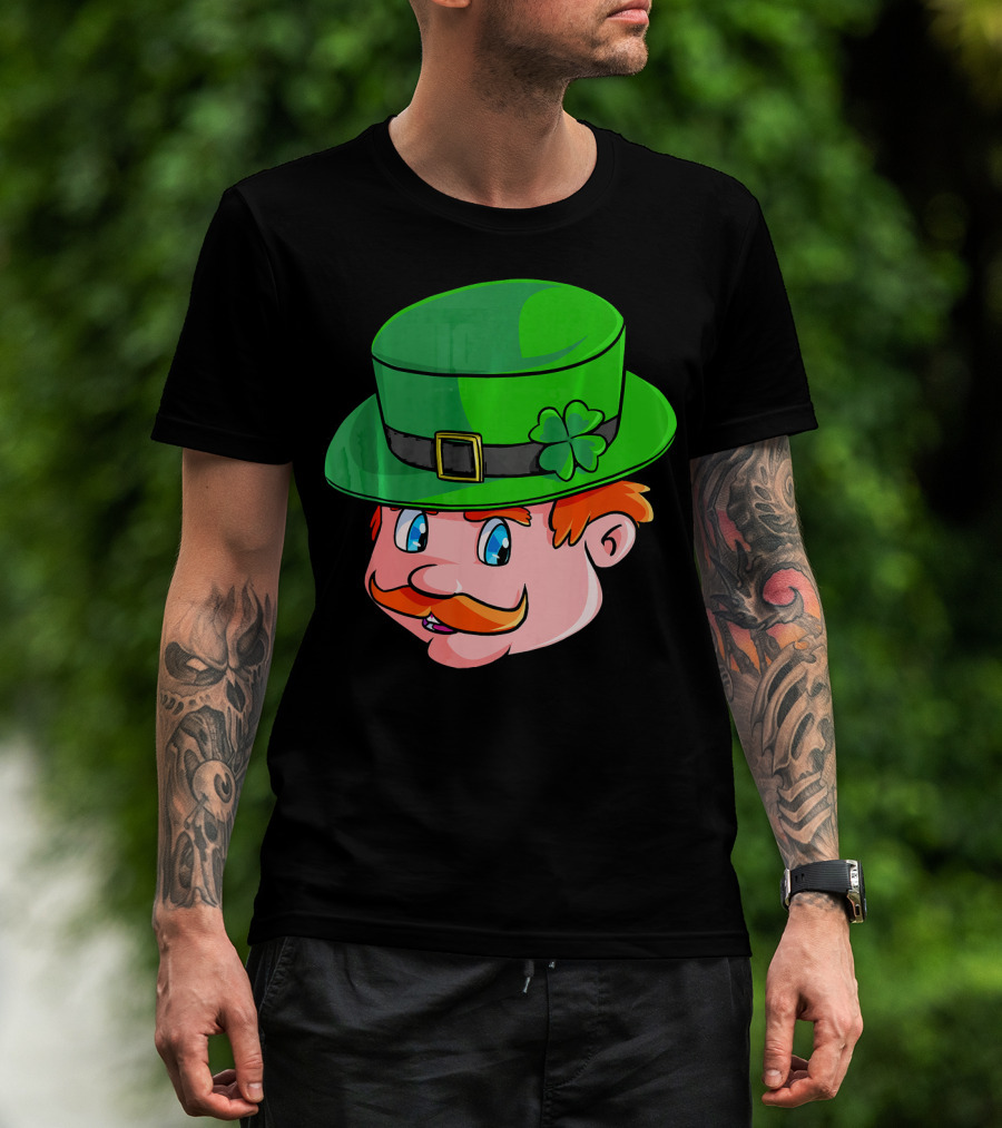 Leprechaun Face With Green Hat And Shamrock T-Shirt