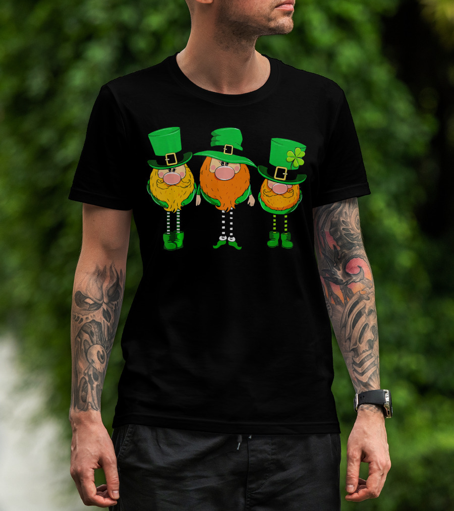 Irish Leprechaun Gnomes In Green Hats With Shamrock T-Shirt