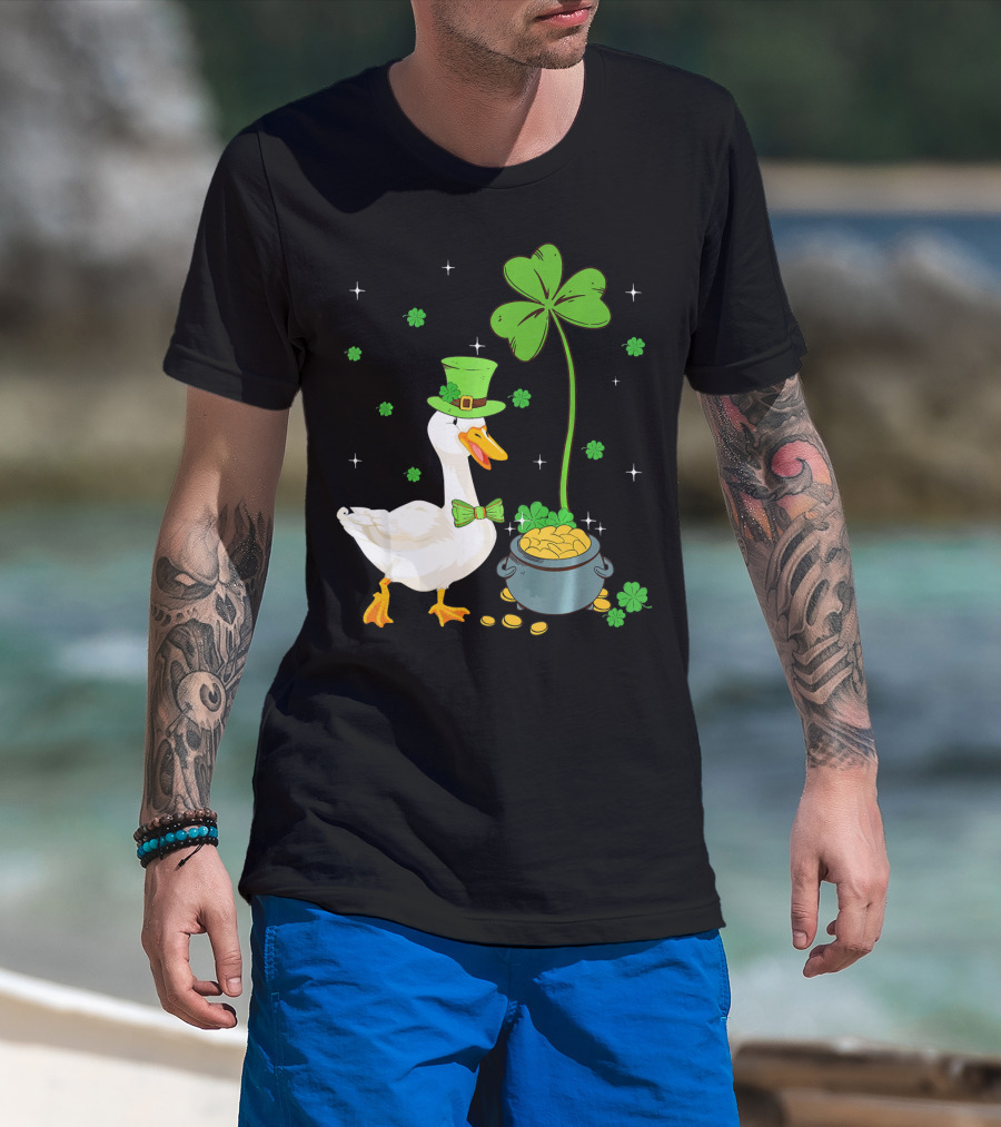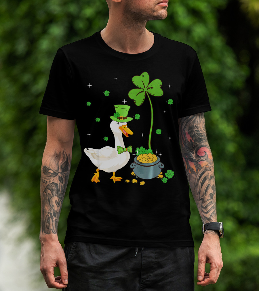 Shamrock Duck With Leprechaun Hat And Pot Of Gold T-Shirt