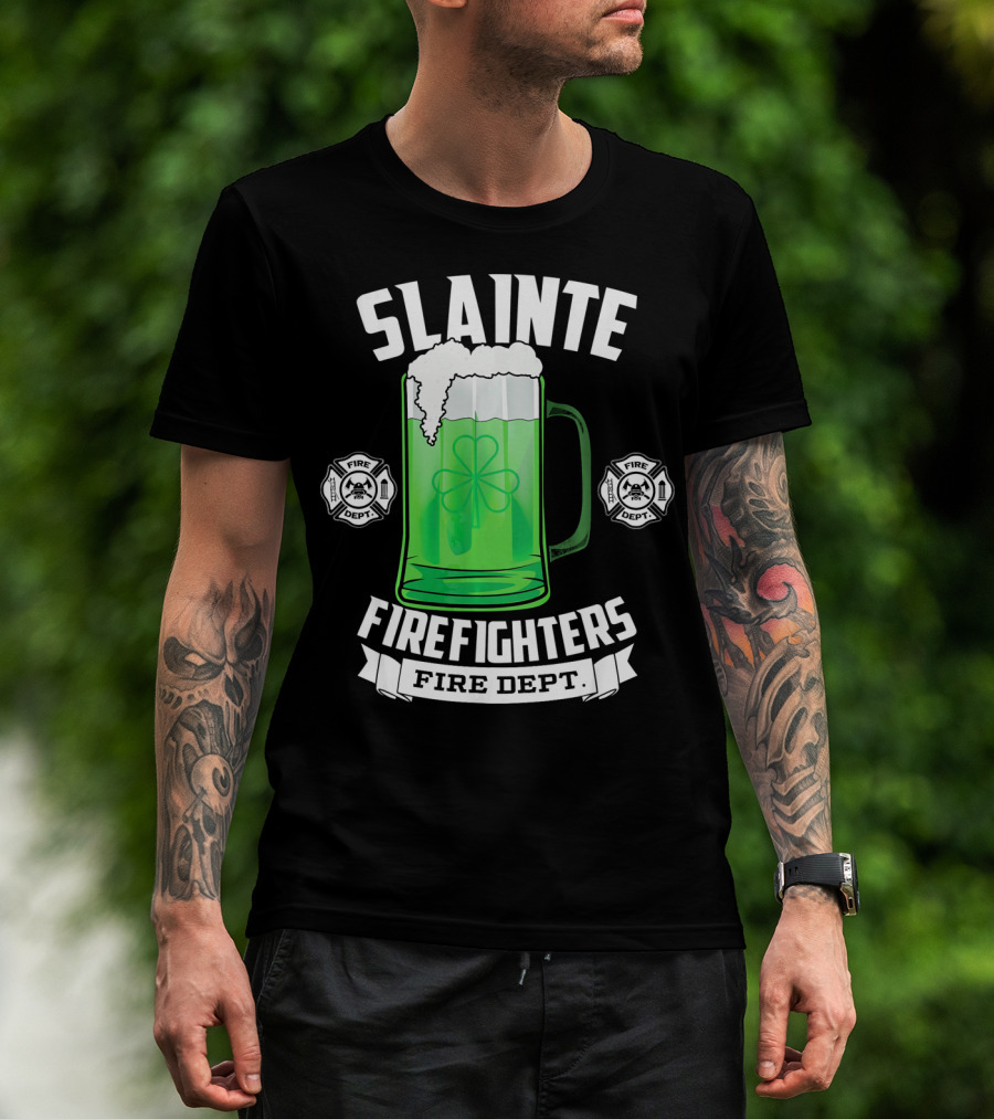 Slainte Shamrock Beer Firefighters Fire Dept T-Shirt