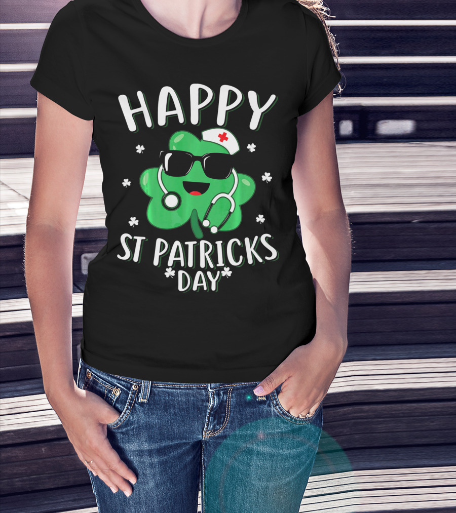 The Happy St Patricks Day Nurse Shamrock with Stethoscope and Nurse Cap T-shirt is designed for everyday wear and a consistent fit. Fabric is pre-shrunk ring-spun cotton with durable stitching. See the size chart below for exact measurements.