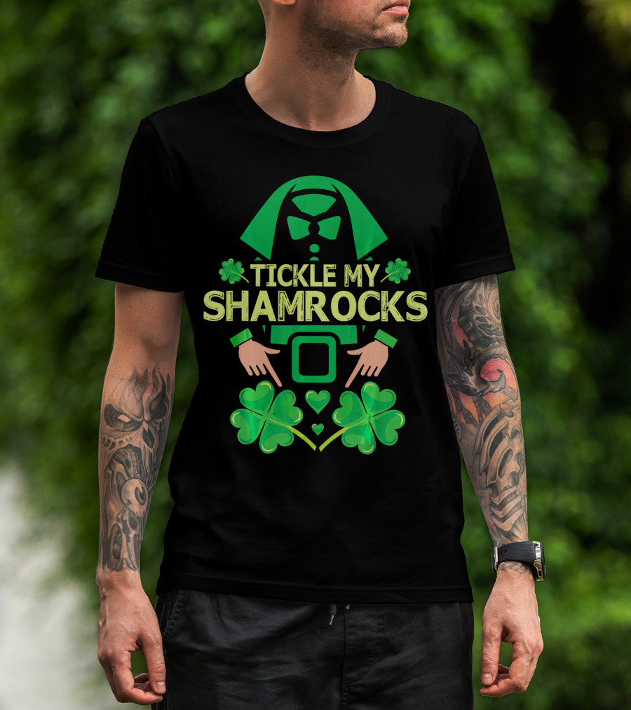 Tickle My Shamrocks Irish Leprechaun Costume Shamrock Hands Green Hearts T-Shirt