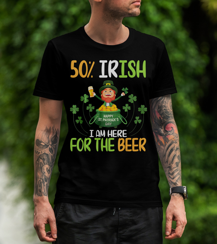 50% Irish Happy St. Patrick's Day I Am Here For The Beer T-Shirt