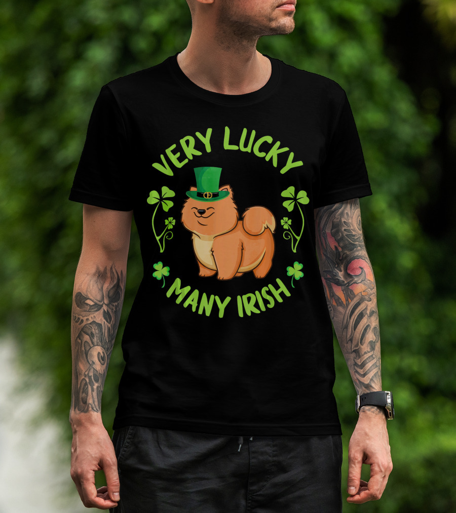 Very Lucky Many Irish Chow Chow Dog With Leprechaun Hat T-Shirt