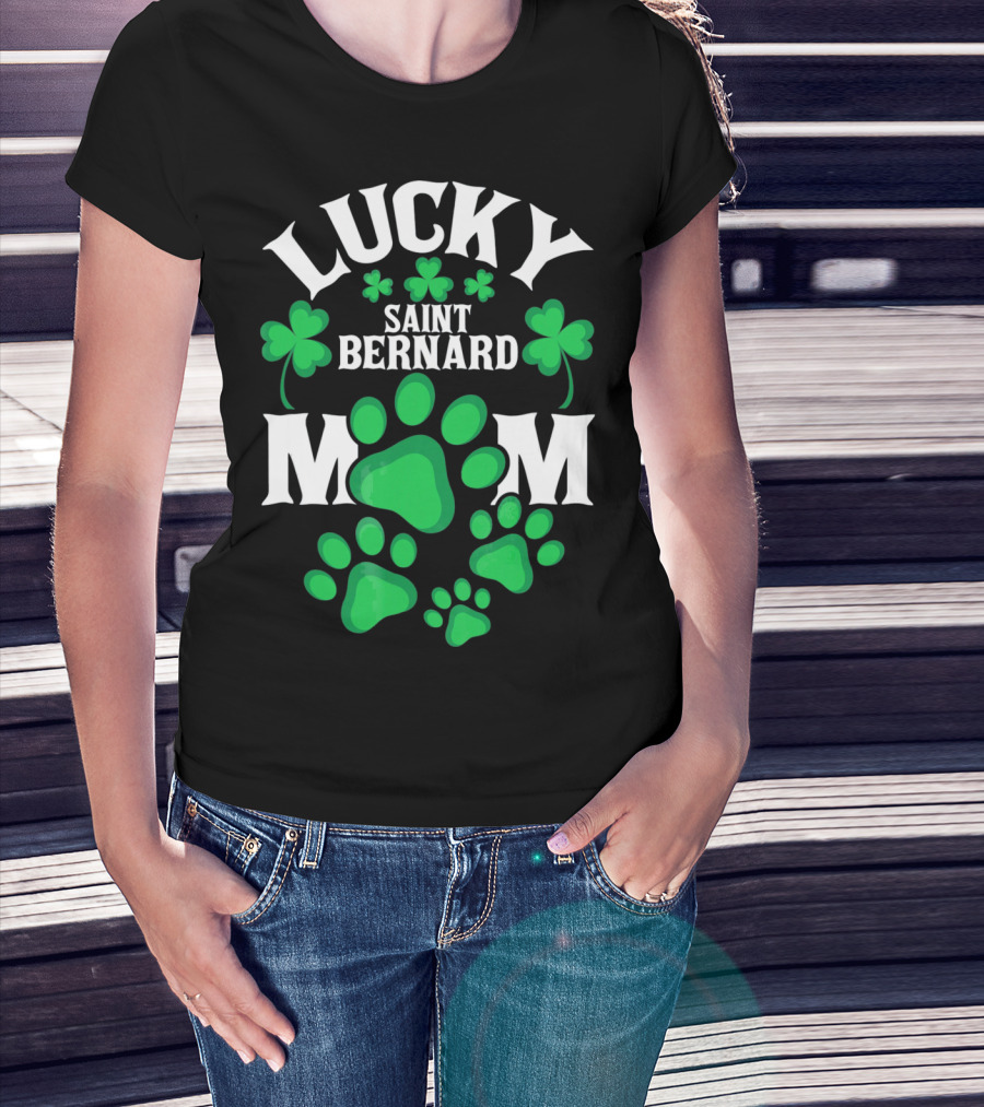 Lucky Saint Bernard Mom St. Patrick's Day T-Shirt