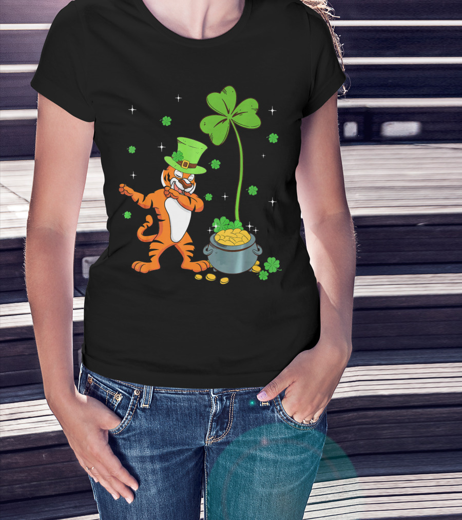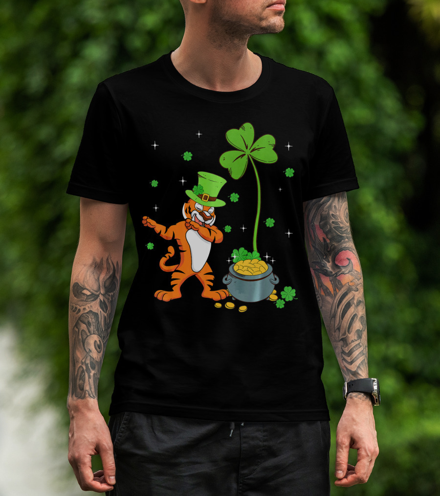 Shamrock Leprechaun Tiger St Patricks Gold Pot T-Shirt
