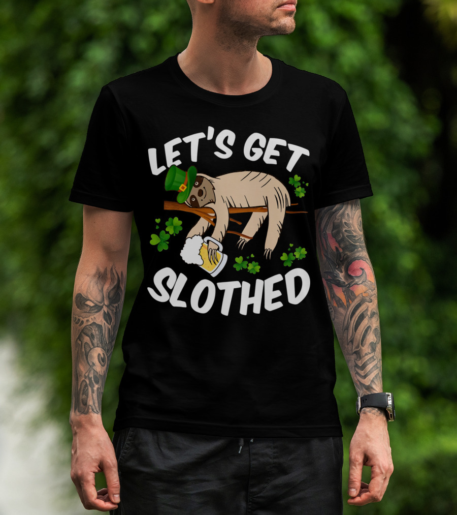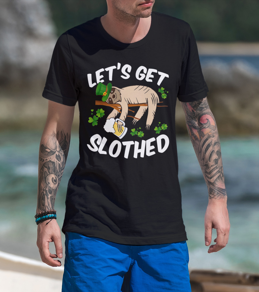 Let's Get Slothed Irish Sloth With Leprechaun Hat And Beer T-Shirt