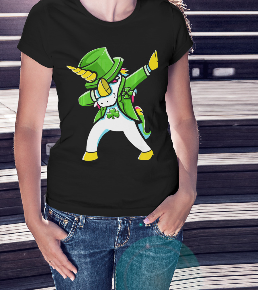 The St Patricks Day Unicorn Dabbing Shamrock Hat T-shirt is designed for everyday wear and a consistent fit. Fabric is pre-shrunk ring-spun cotton with durable stitching. See the size chart below for exact measurements.