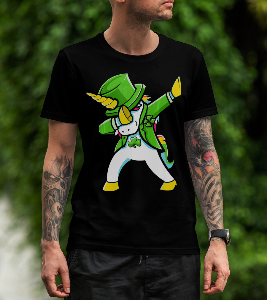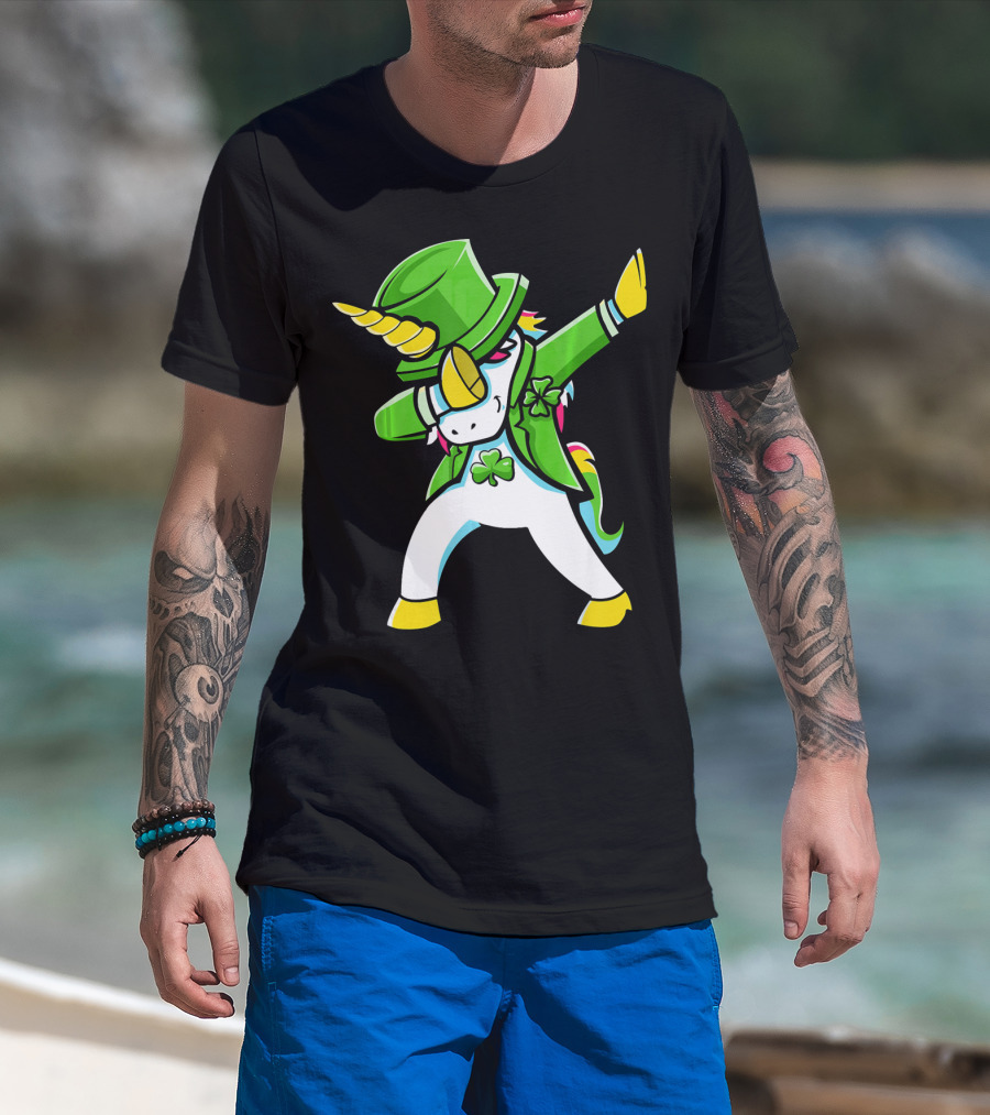 St Patricks Day Unicorn Dabbing Shamrock Hat T-Shirt