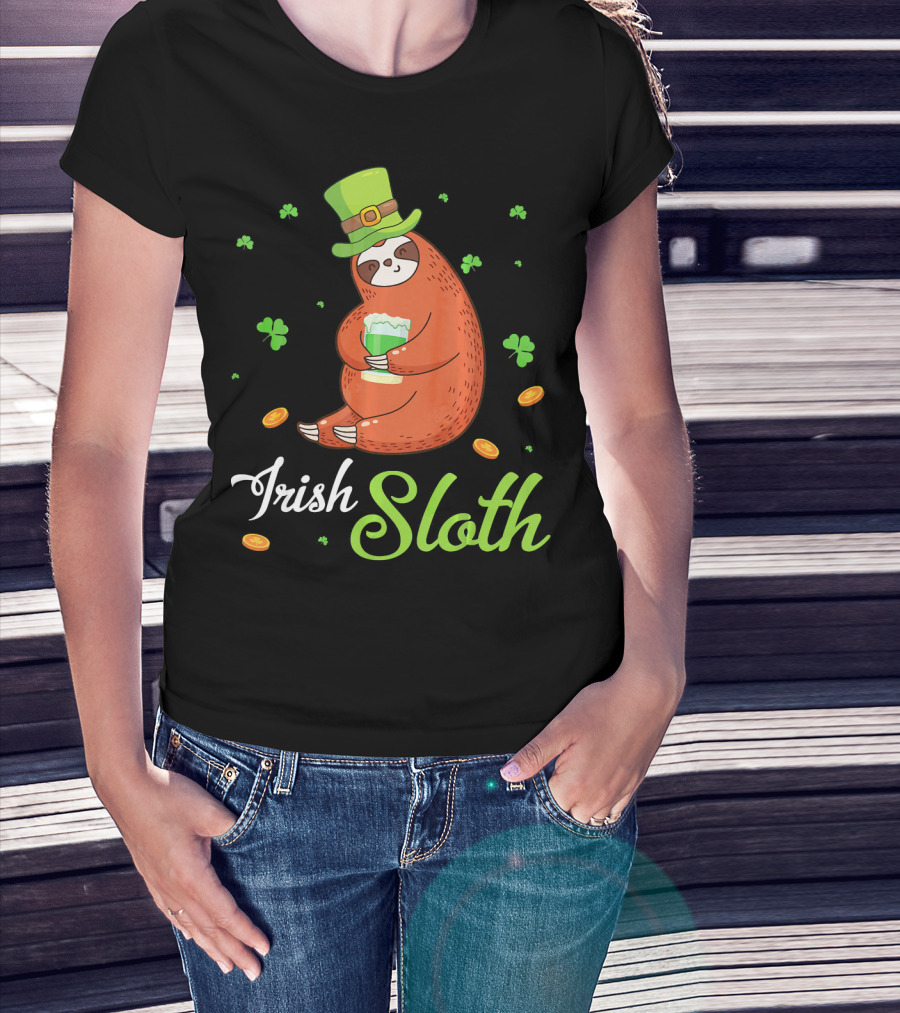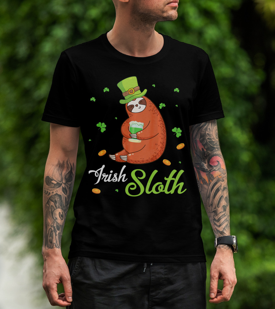 Irish Sloth Leprechaun Drinking Shamrocks Go T-Shirt