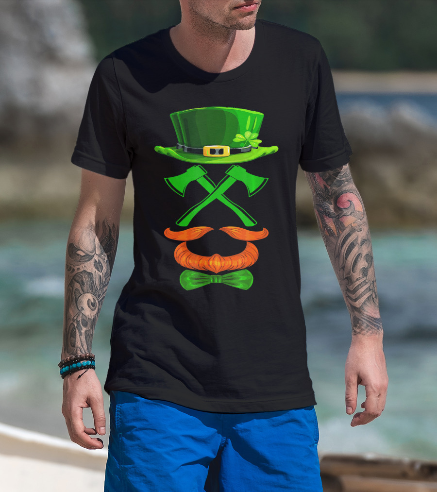 Leprechaun Hat And Crossed Axes With Orange Beard And Bow Tie T-Shirt