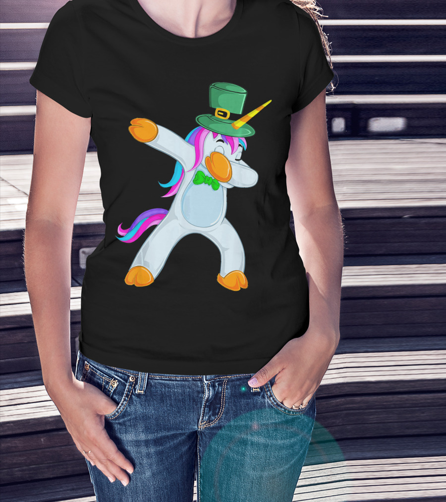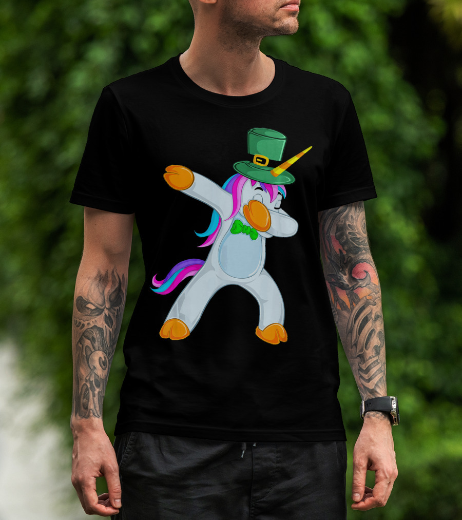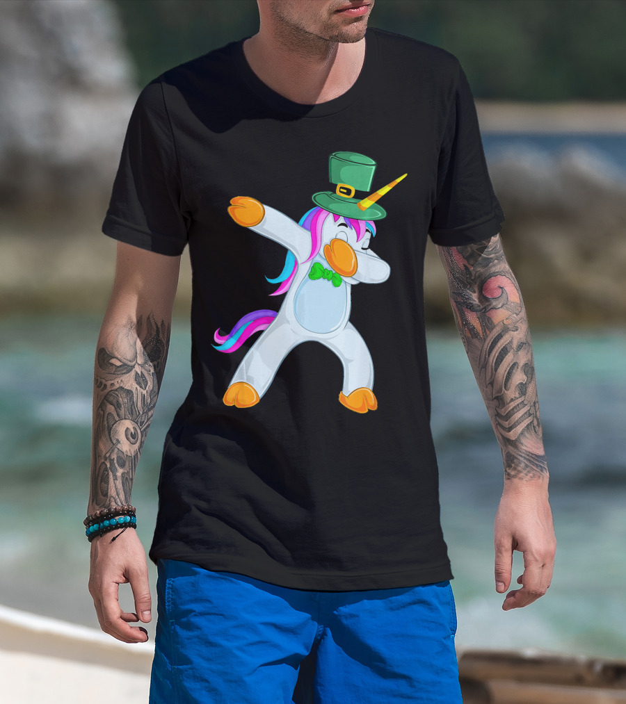 Lepricorn Cute Dabbing Leprechaun Unicorn With Rainbow Mane And Green Hat T-Shirt